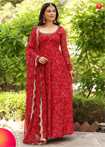 Radiate Elegance in This Red Hand Work Anarkali Suit