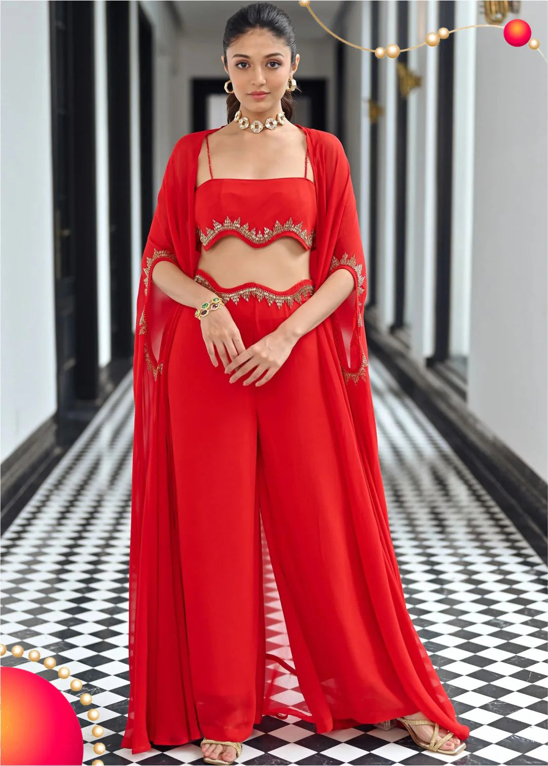 Radiate Elegance in This Red Hand Work Anarkali Suit