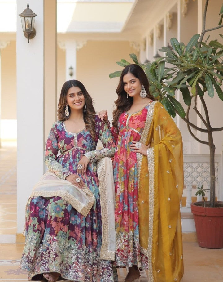LIKSHA PREMIUM READYMADE GOWN WITH DUPATTA SET-LC-1084👉🏻 GOWN :- 👇👉🏻 FABRIC & WORK:- Faux Georgette...