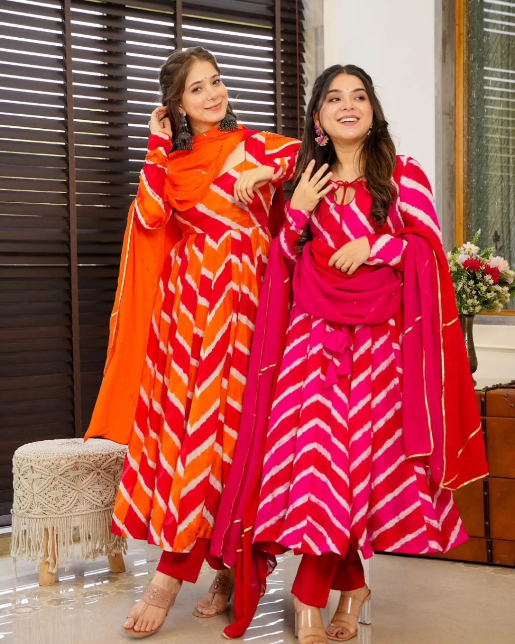 RED&PINK LEHERIYA SUIT SET-TD-140 Attractive Party Wear Hevy Orgenza Febric with has a Regular-fit and...