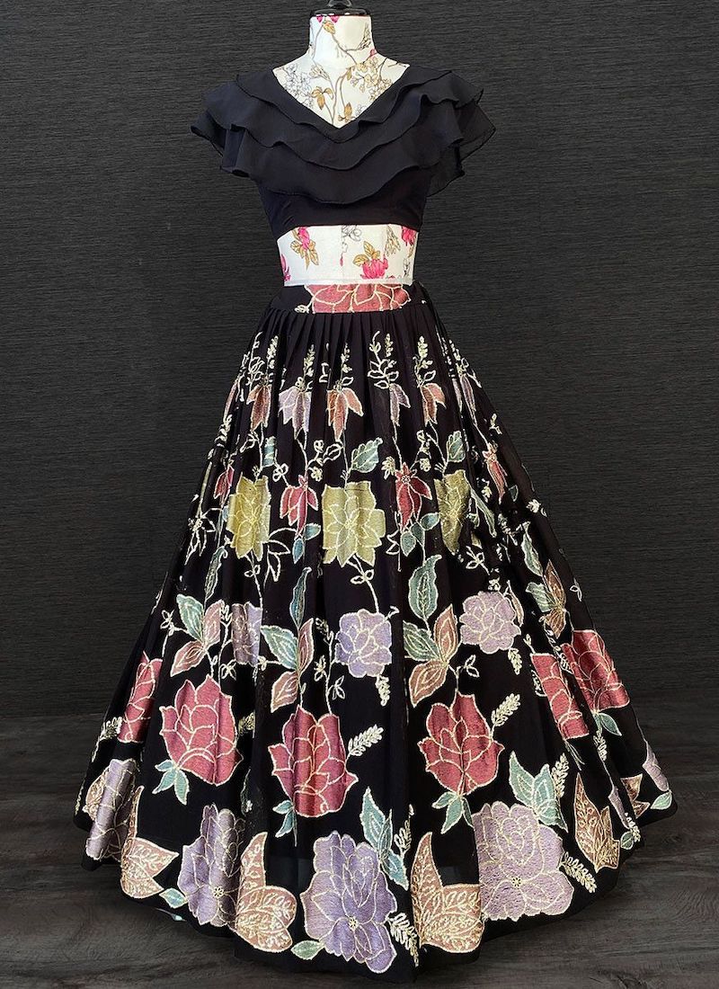 Tinaa In Black Full Flairy Pure Soft Georgette Full Stitched Lehenga Choli