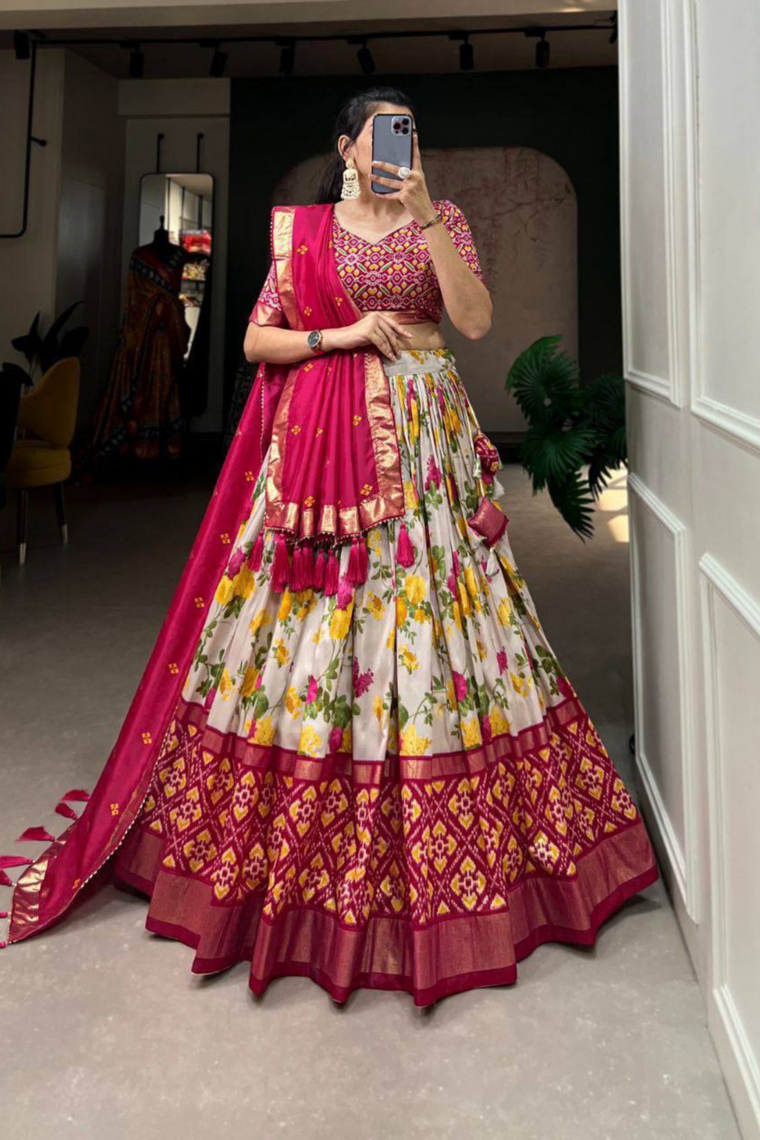 Tussar Silk Lehenga Set with Ikkat Patola Print & Foil Work – A Timeless Elegance