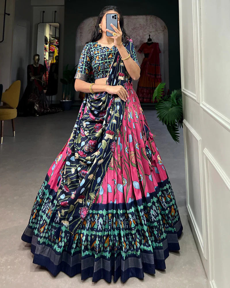FIROZI COLOR TUSSAR SILK PATOLA PRINTED LEHENGA CHOLI