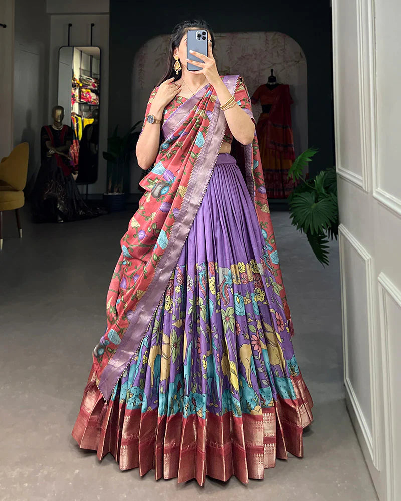 LAVENDER COLOR DOLA SILK DESIGNER KALAMKARI PRINT LEHENGA CHOLI