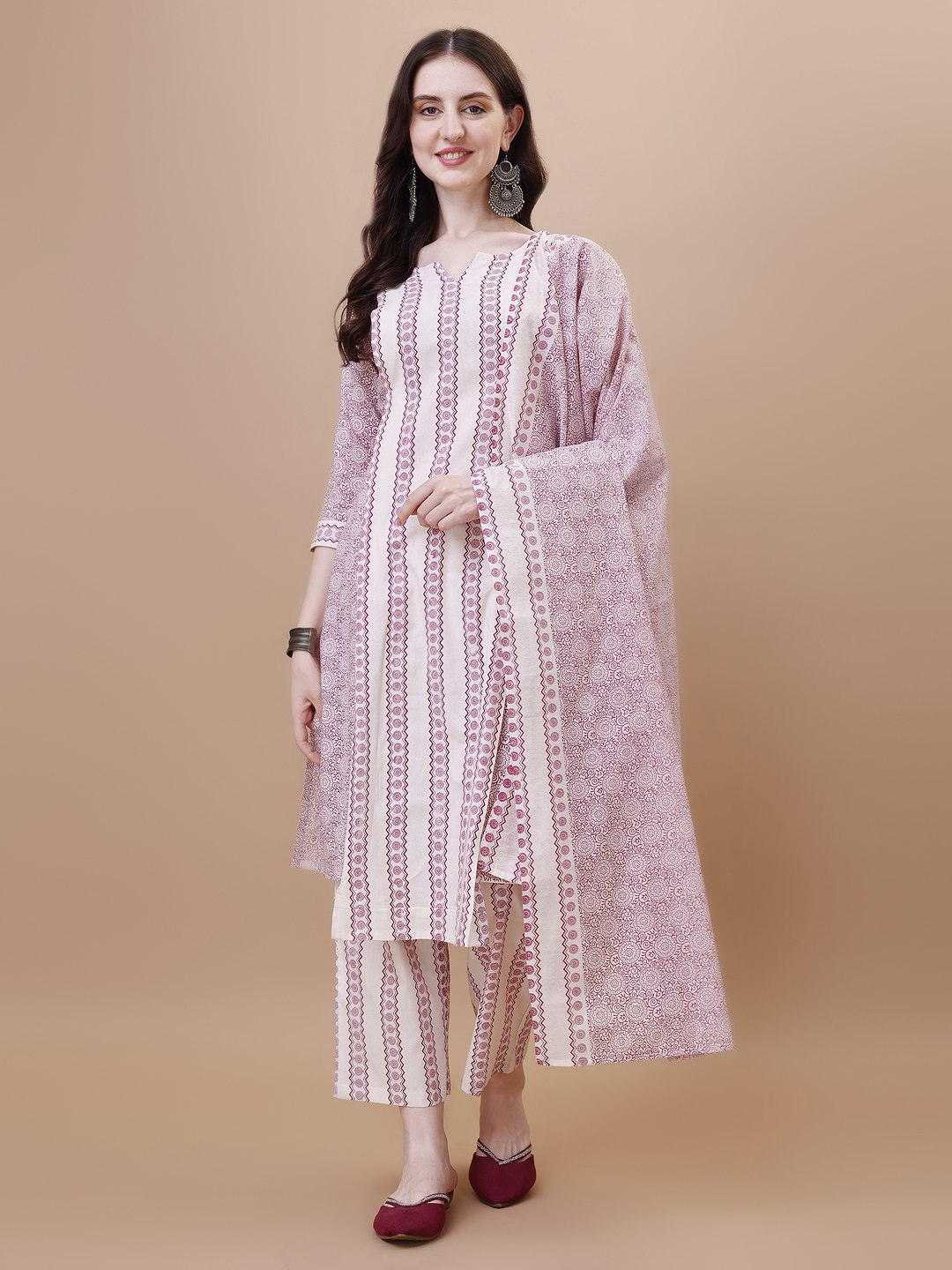 This stylish and comfortable Kurta Set is crafted from soft cotton printed fabric, featuring a...