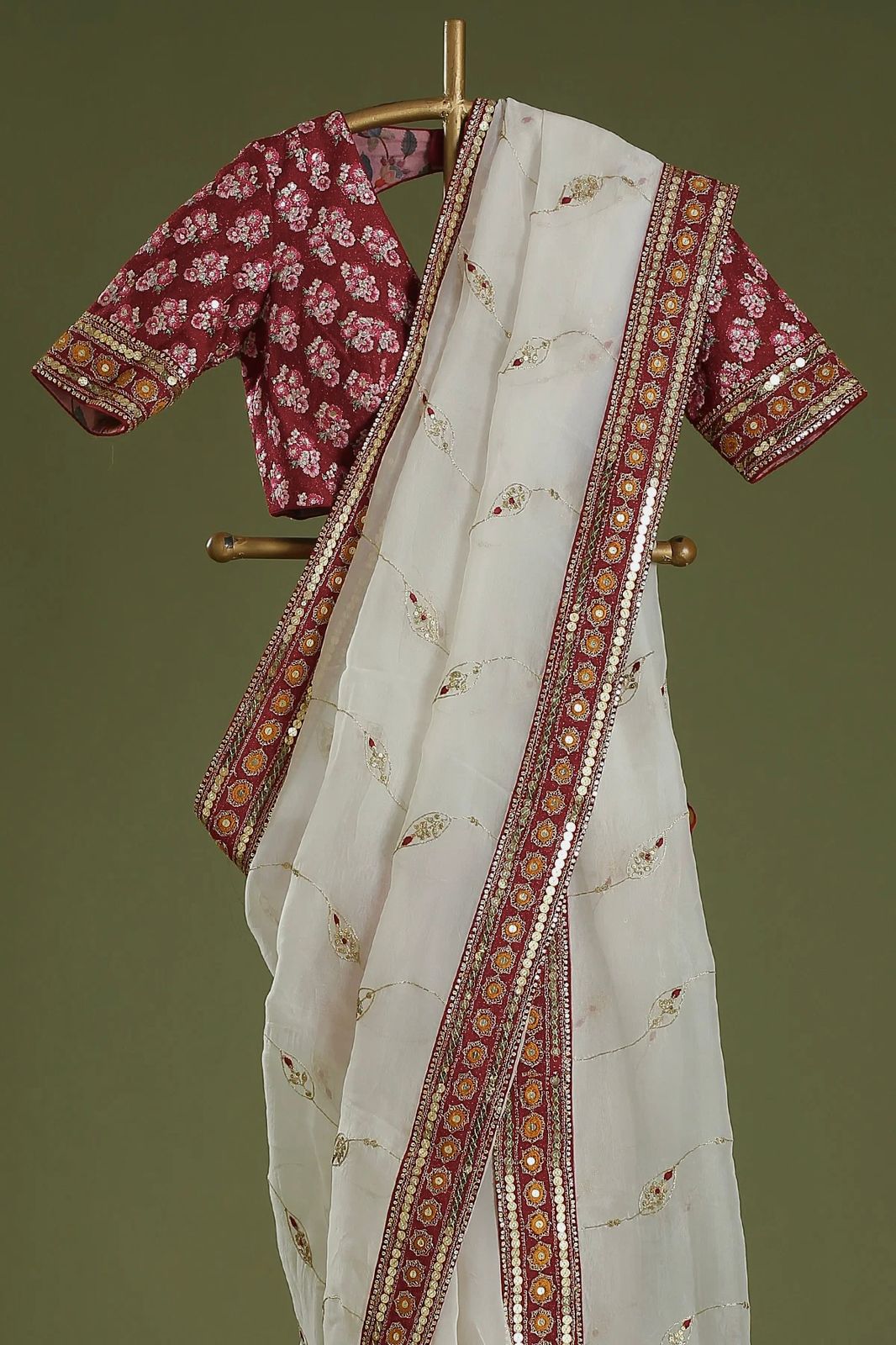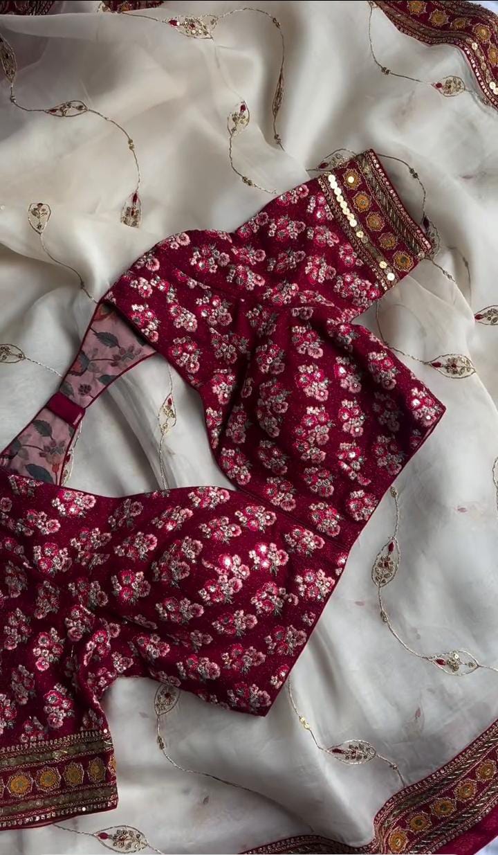 BLOUSE : Mono Banglori Silk With Thread & Sequin Work (Unstitched)