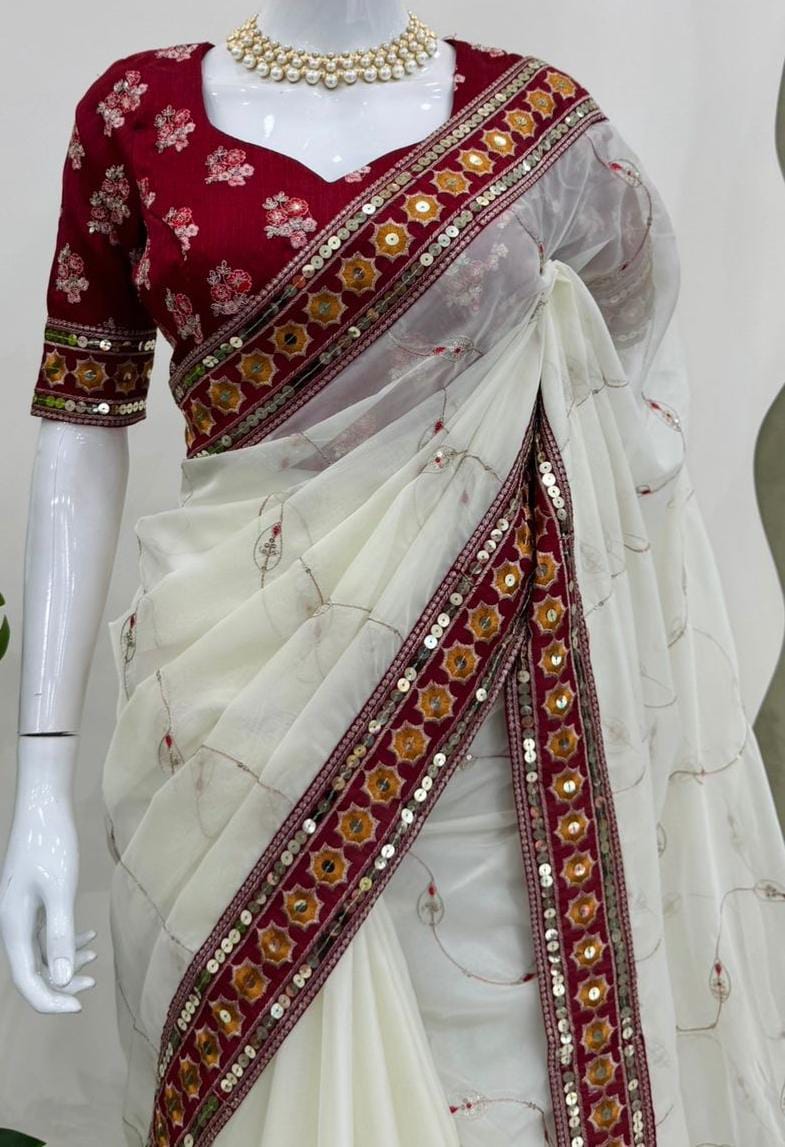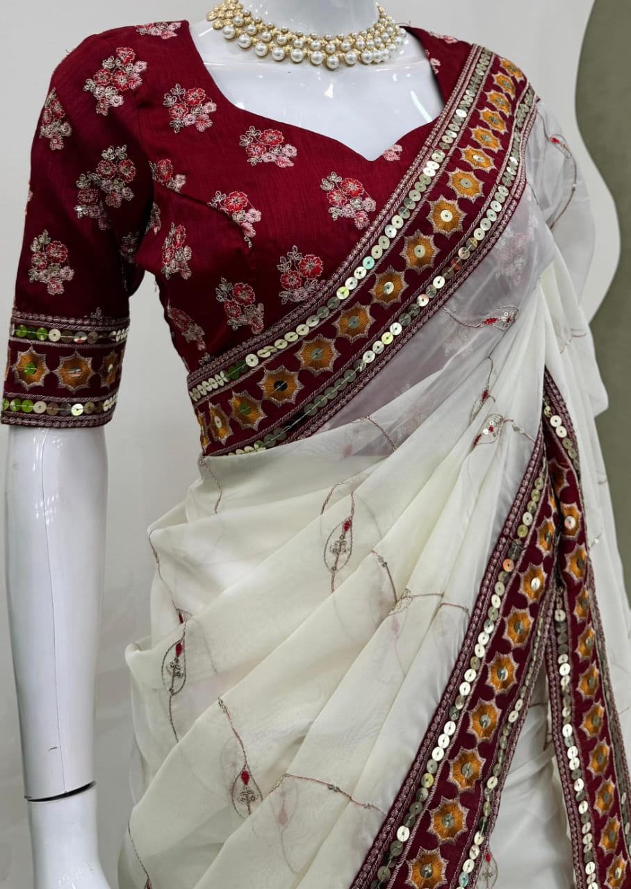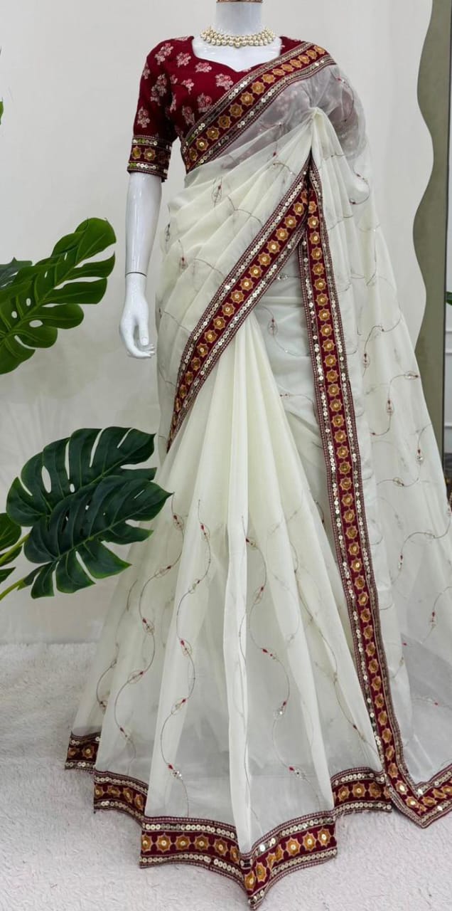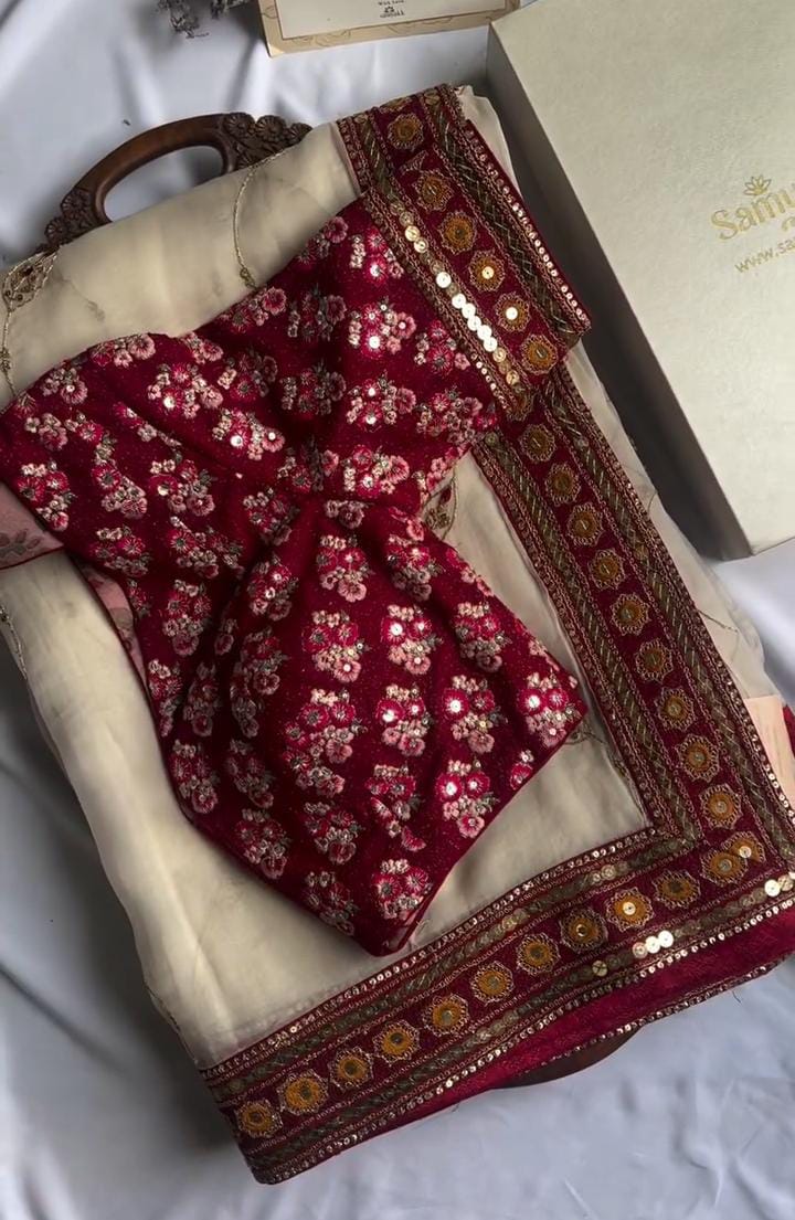 SAREE : Heavy Tibby Silk With Thread & Sequin Work.