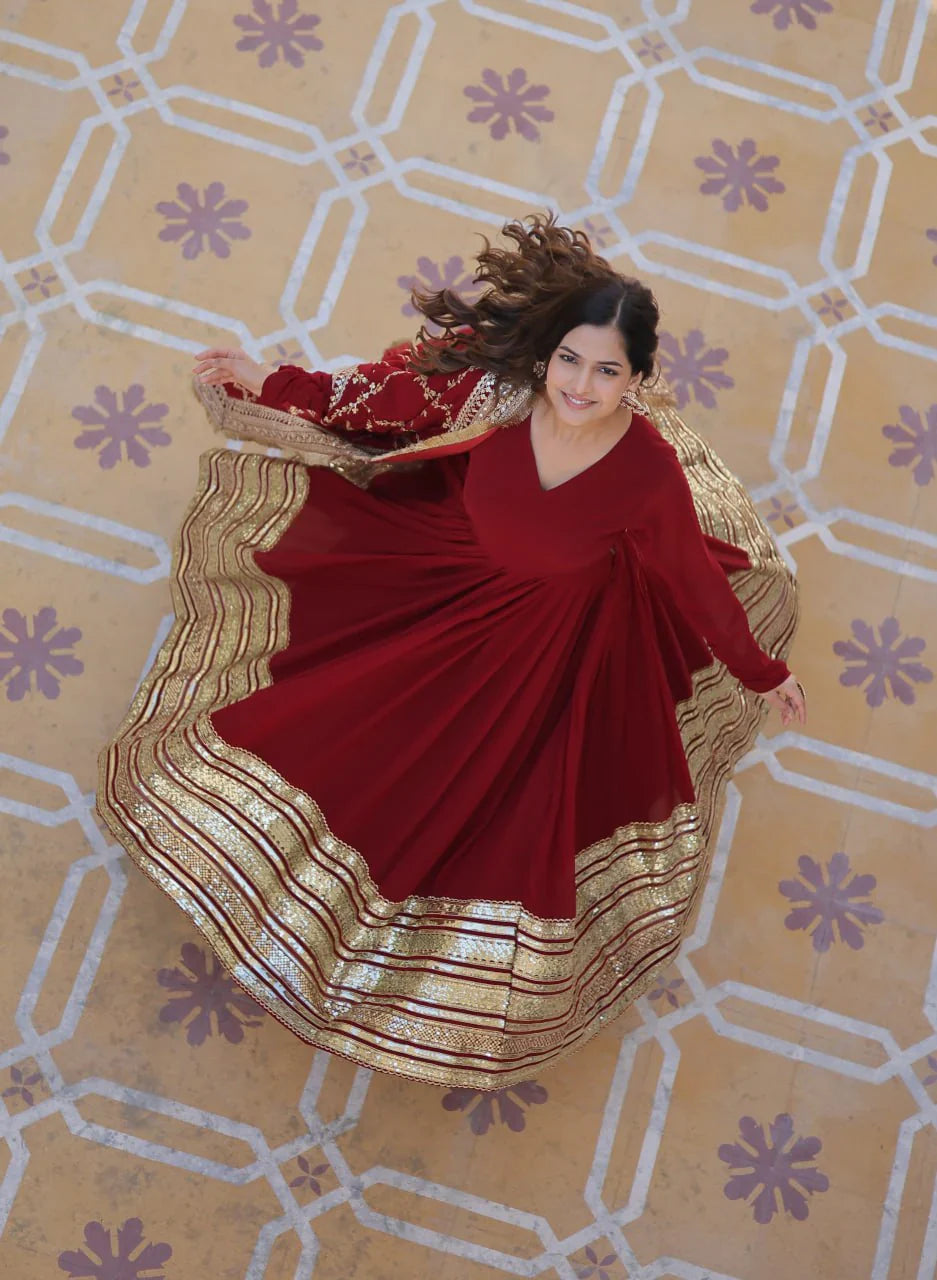 👉🏻FABRIC :- Faux blooming With Sequins Embroidered work with designer lace border