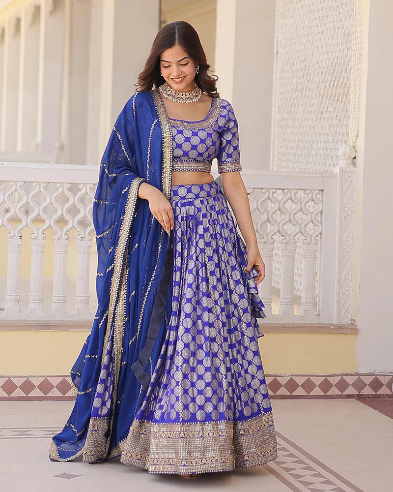 BLUE COLOR PURE VISCOSE JACQUARD LEHENGA CHOLI