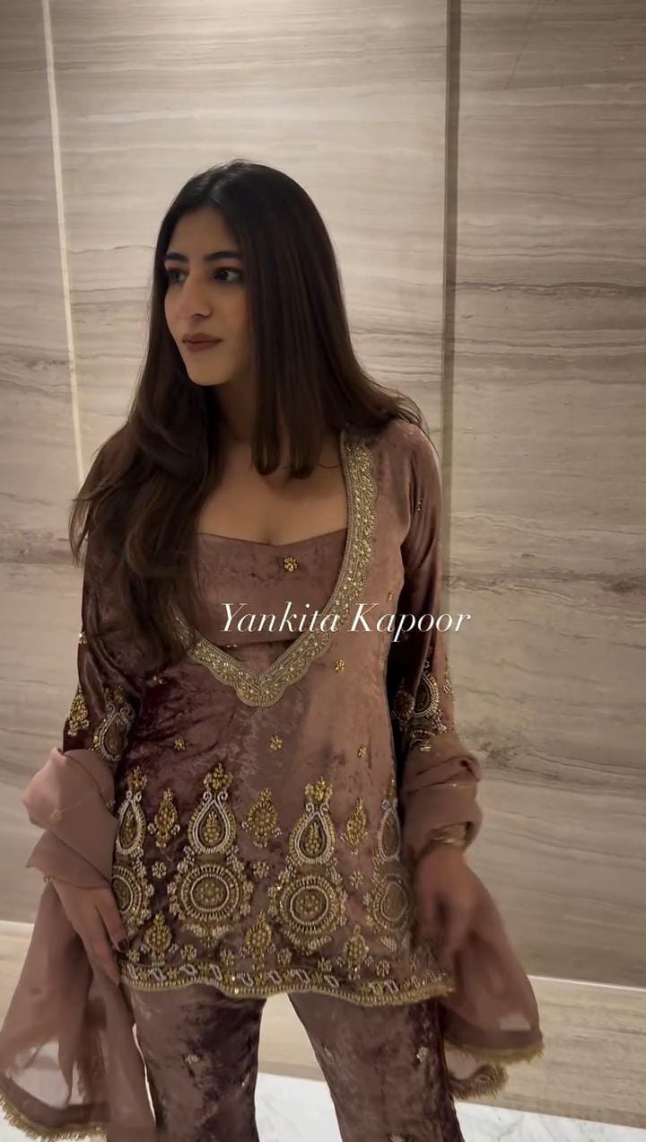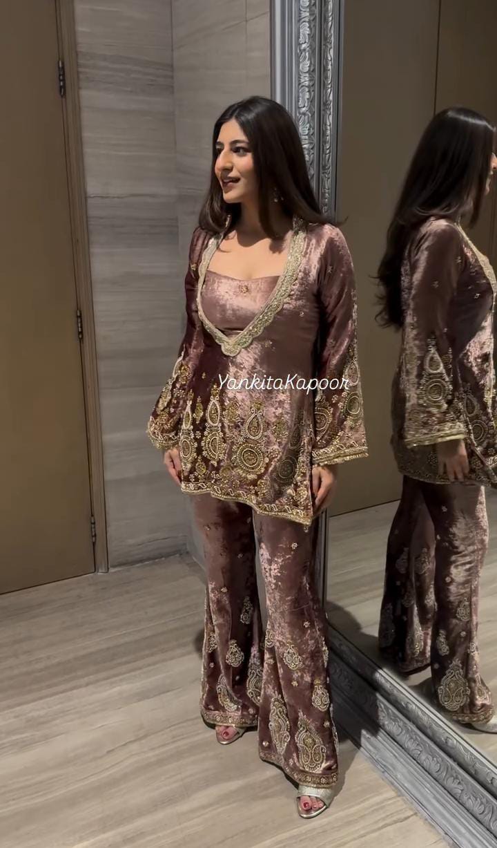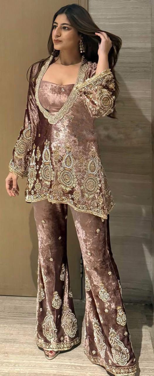 TOP : Velvet fabric with embroidery sequin work Till size 42 (fully stitched)