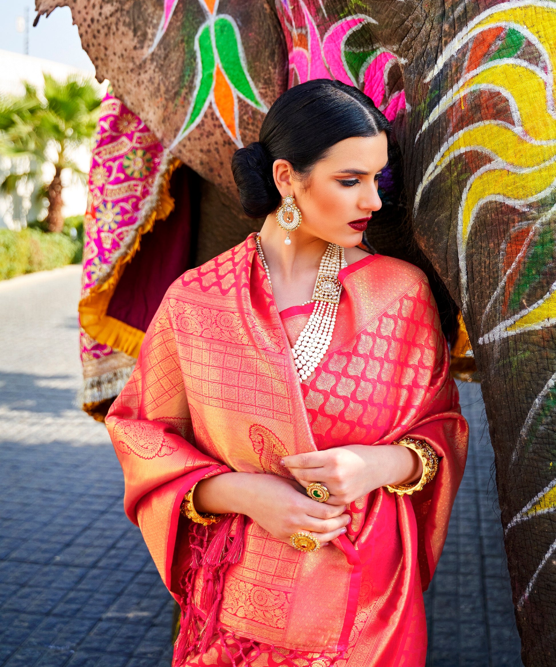 Ceremonial Royal Pink Woven Kanjivaram Saree