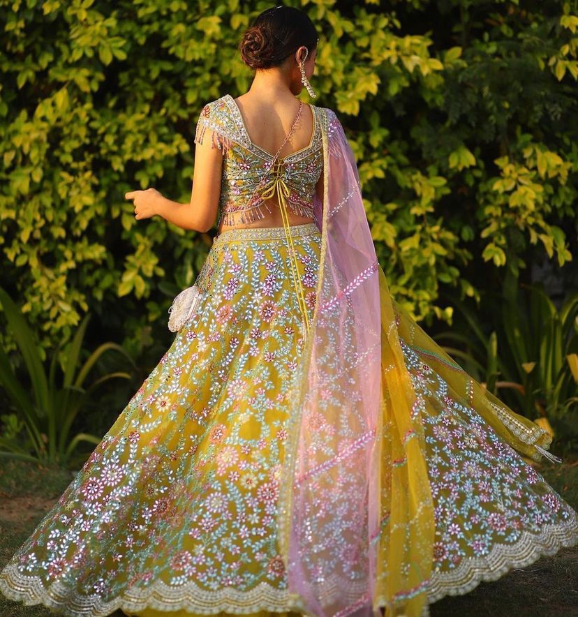 Lehenga: Semi - stitched up to size 44