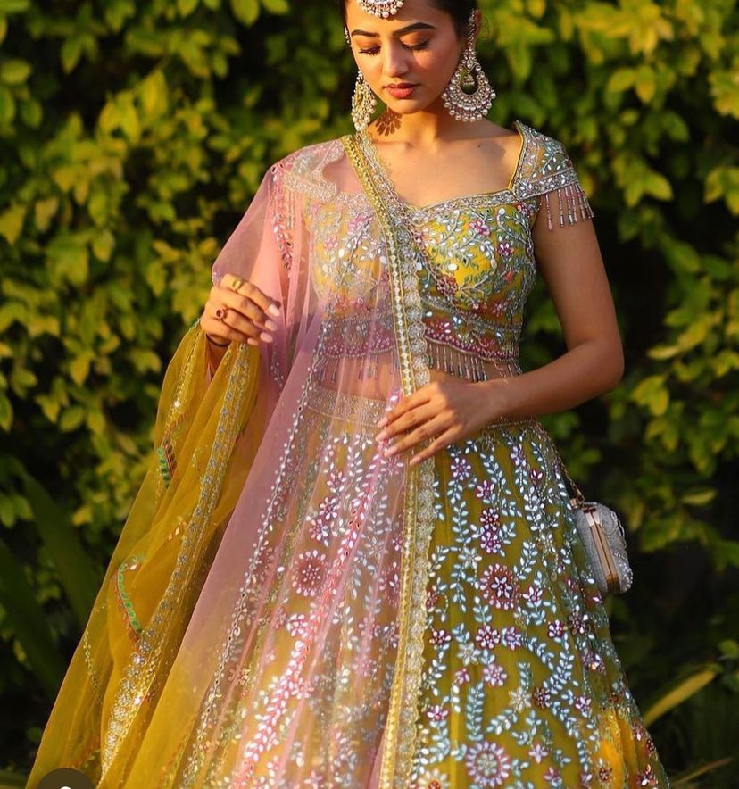 Work: Real mirror, pearl work and sequence embroidery work with cancan & canvas patta