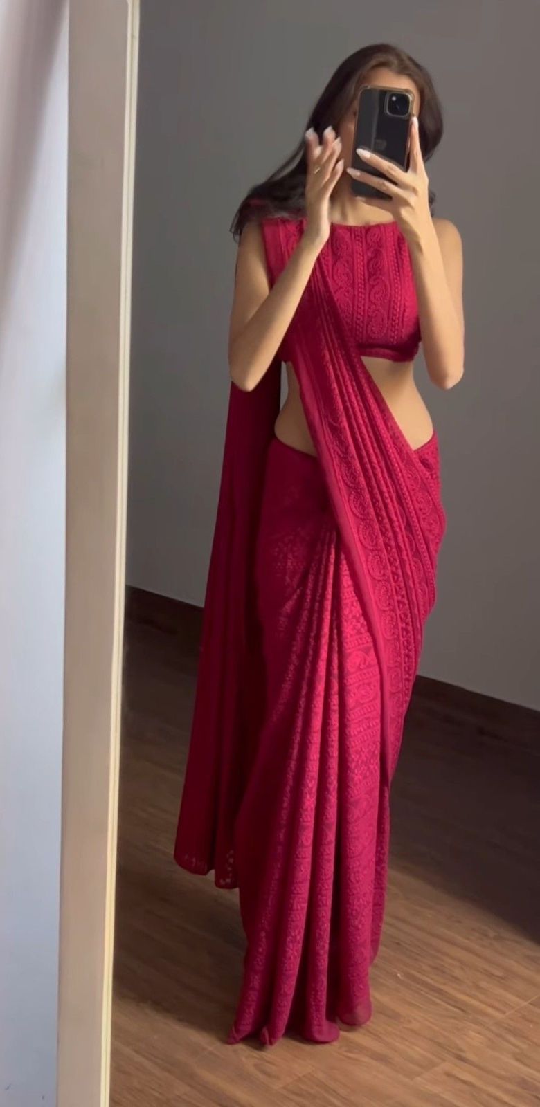 Crafted from the finest georgette fabric, this saree drapes elegantly and exudes a subtle sheen, adding a touch of allure to your ensemble. The understated design allows for versatile styling, making it perfect for both formal occasions and cultural celebrations. Whether you're attending a wedding or a special event, the Classic Georgette Saree effortlessly combines tradition with modern elegance.