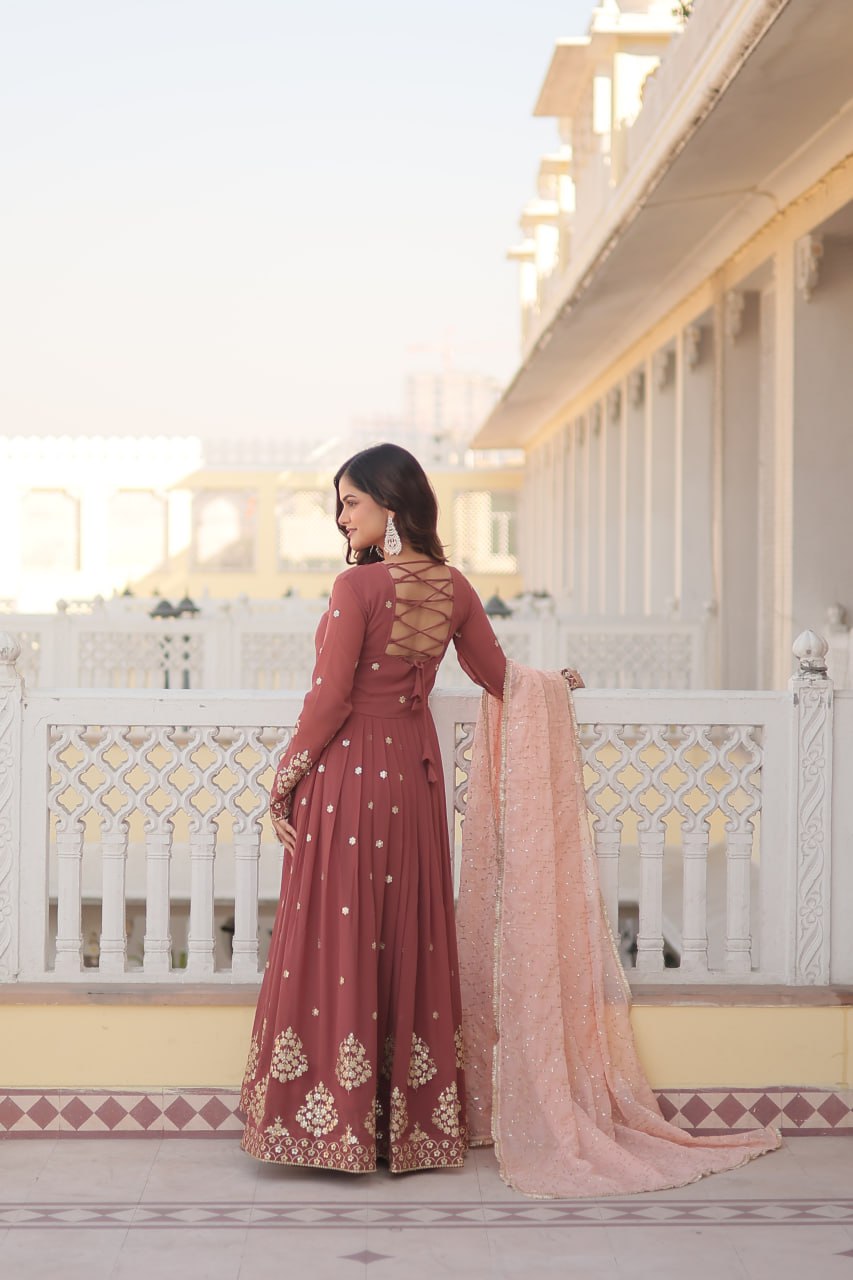Designer Gown is luxury clothing Considered to be high quality Made by Zari Thread & Sequins Embroidery. This is Made for Desirable Women's who deserve it