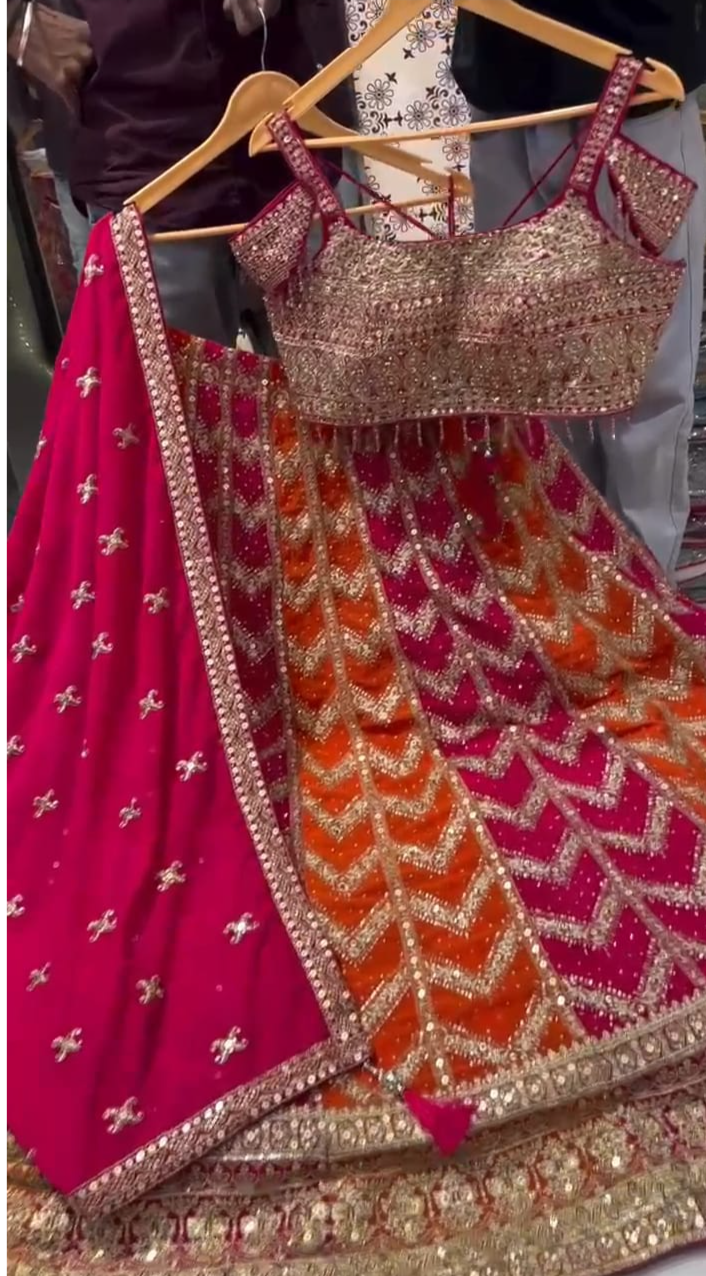 Step into the spotlight with our Dichromatic Shimmering Lehenga Choli, a stunning fusion of modern elegance and traditional charm. This exquisite ensemble features a lehenga crafted from luxurious fabric that shimmers with a captivating dichromatic effect, creating an enchanting play of colors with every move. The intricately embroidered choli complements the lehenga perfectly, adding a touch of sophistication and grace. Perfect for weddings, festivals, and special occasions, this lehenga choli is designed to make you shine. Embrace the beauty and allure of our Dichromatic Shimmering Lehenga Choli and leave a lasting impression.