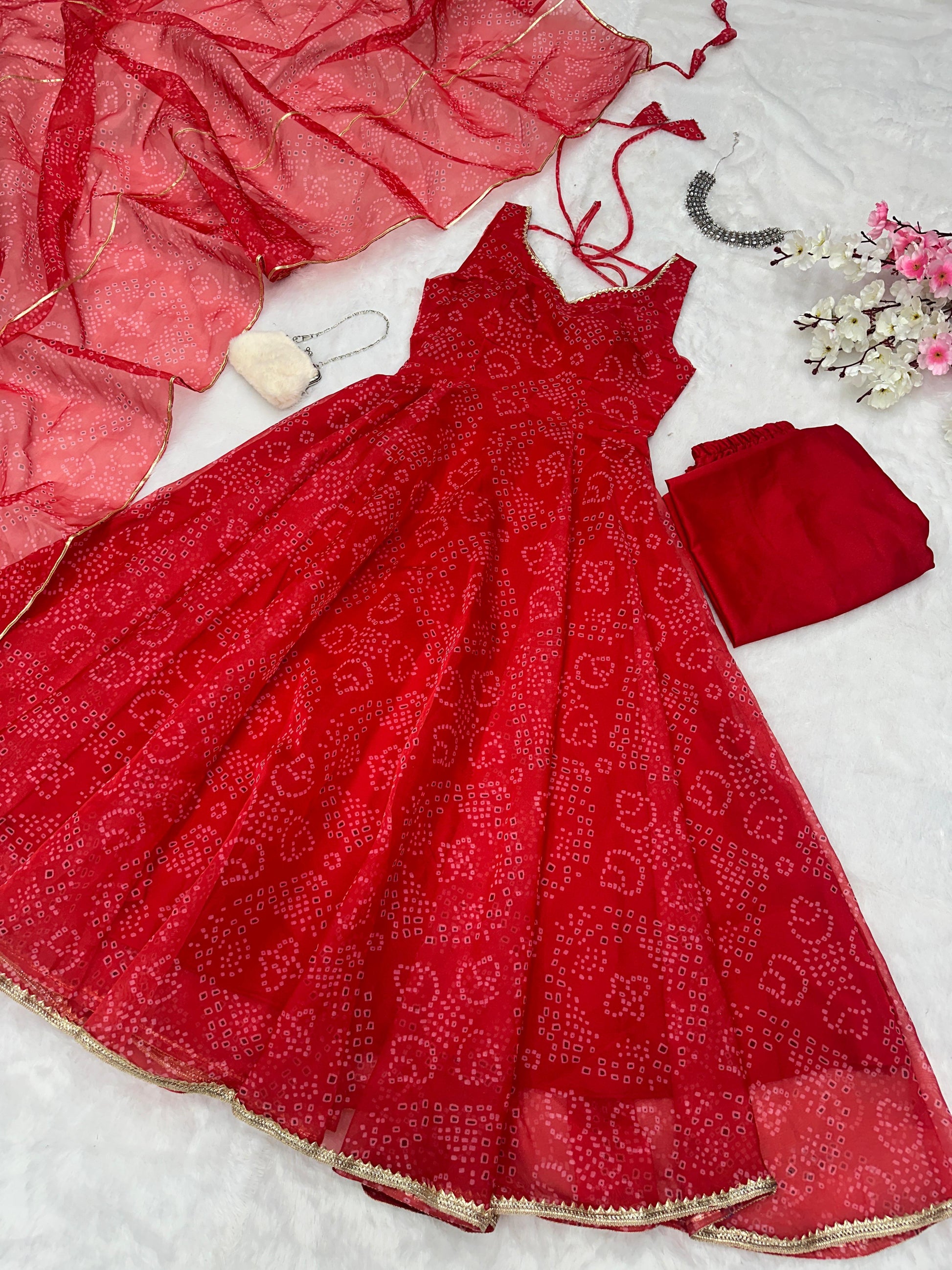 Digital Printed Organza Silk Anarkali Suit Set