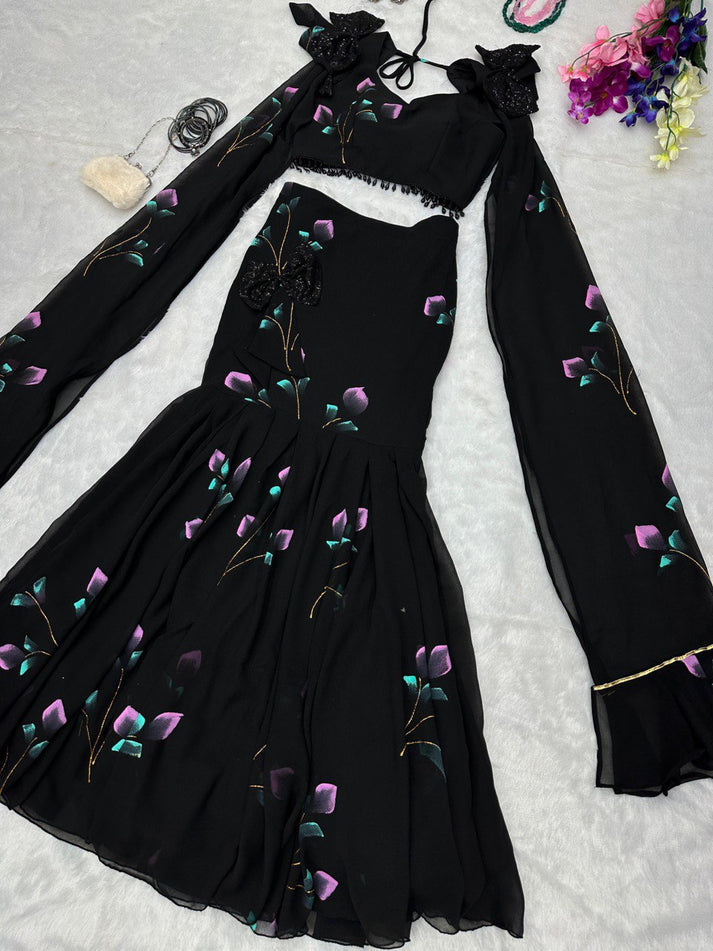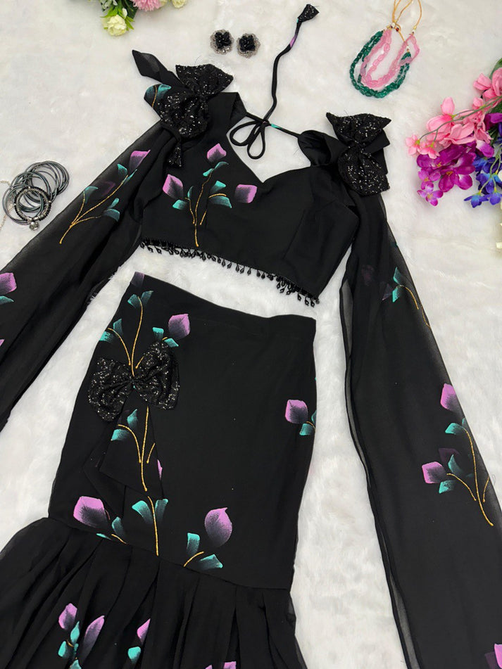 Fancy Pattern Black Color Party Wear Lehenga Choli
