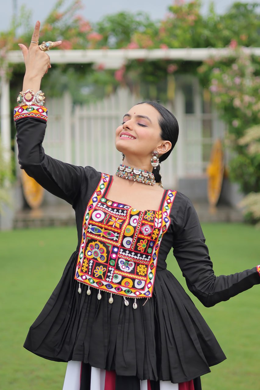 FABRIC & WORK : Roman Fabric with Kutchi Gamthi Work (Fully Stitched)