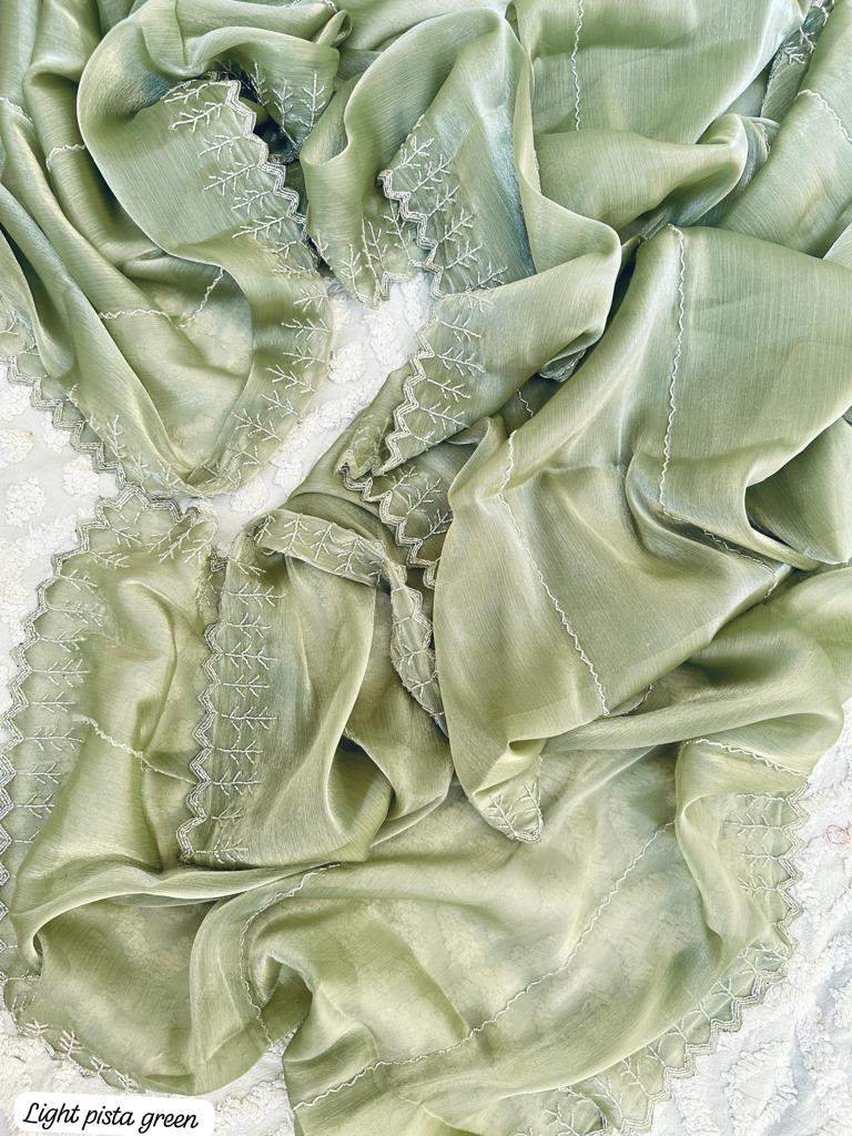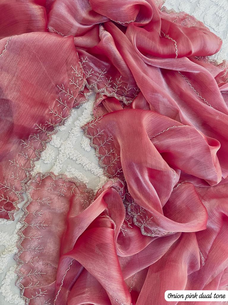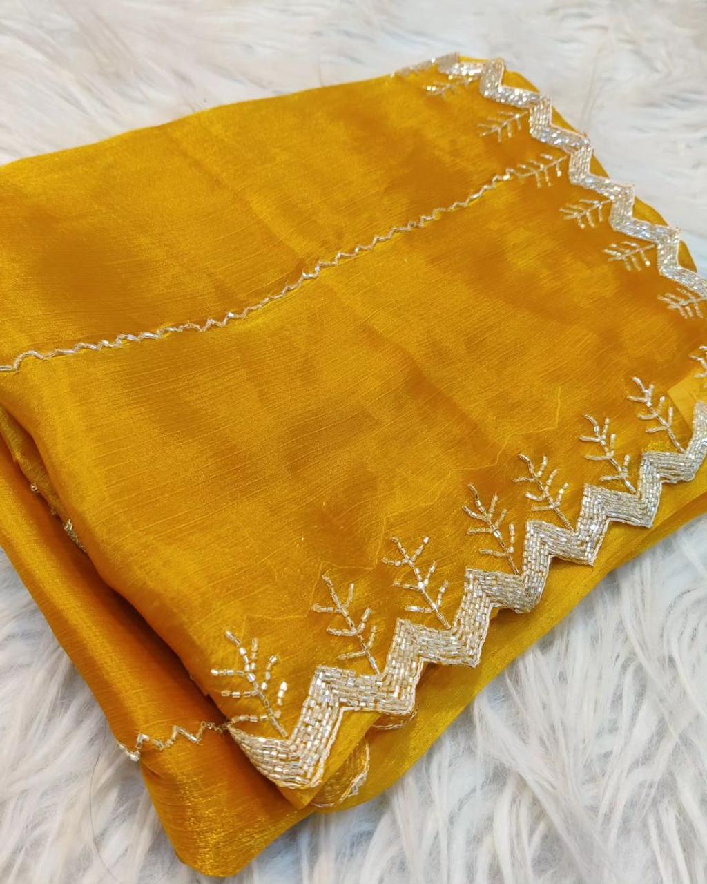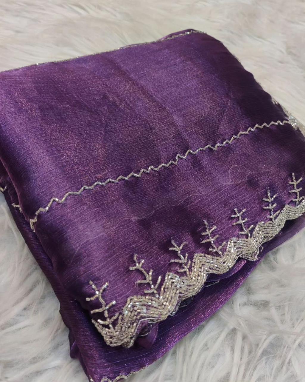 WORK : Handwork saree with silver border & saree features with silver cut dana.