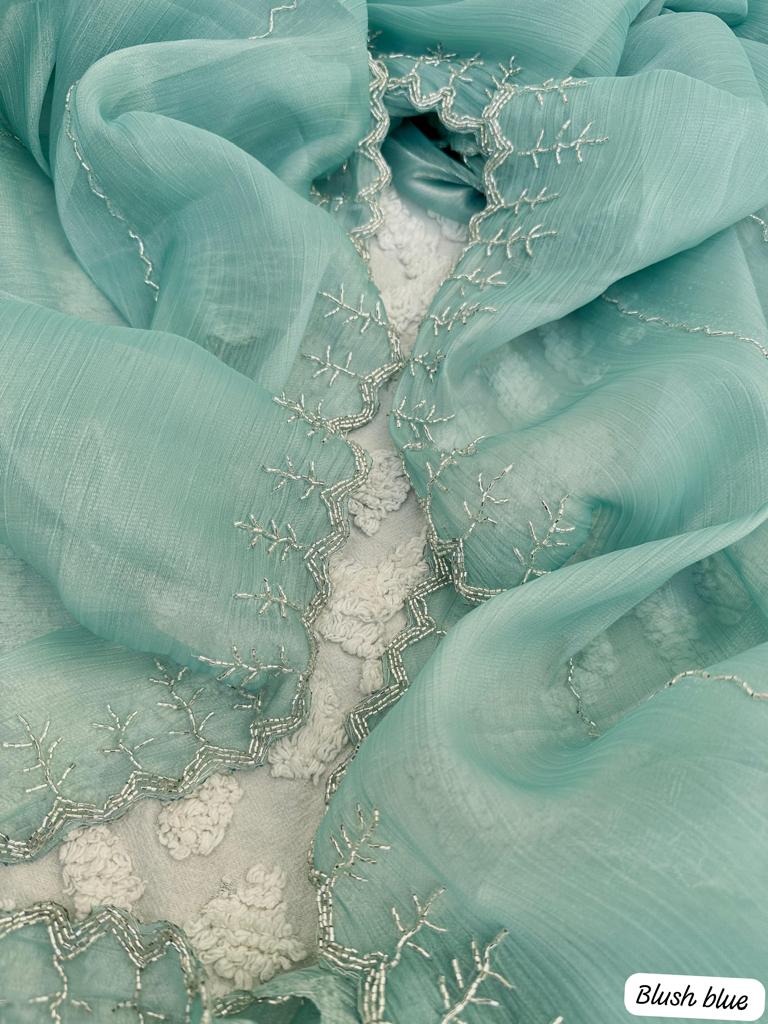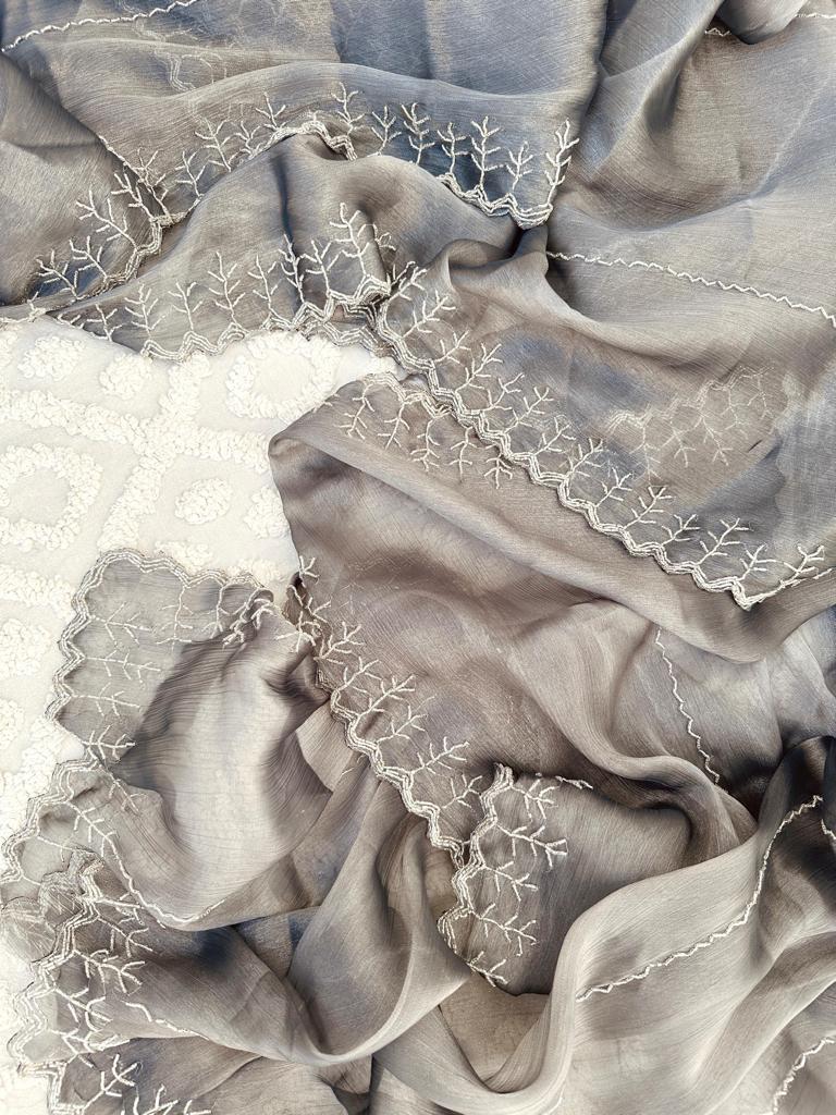BLOUSE : Approx 1 meter panel work with handwork in silver cut dana (Unstitched)