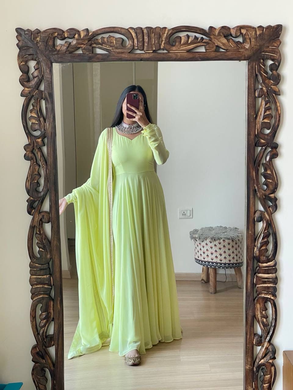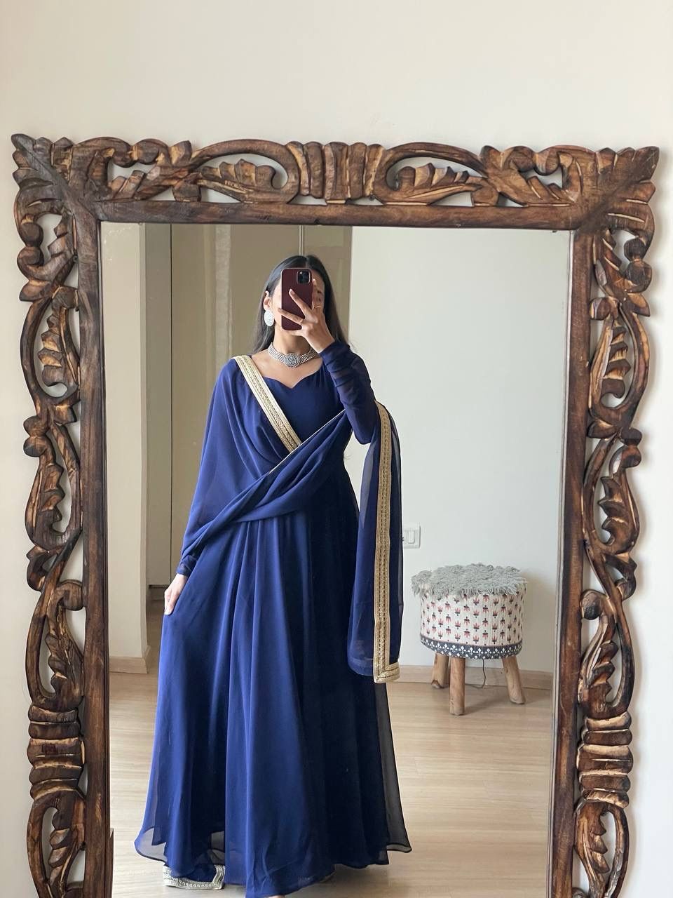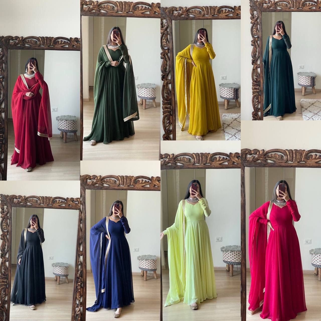 Introducing our Graceful Georgette Gown – a timeless masterpiece designed to embody elegance and sophistication. Crafted from luxurious georgette fabric, this gown flows gracefully with every movement, accentuating your silhouette with its flattering drape. Its exquisite design features intricate detailing and a classic silhouette, perfect for formal events, galas, or special occasions where you want to make a statement. Elevate your style with the Graceful Georgette Gown and exude timeless charm wherever you go.