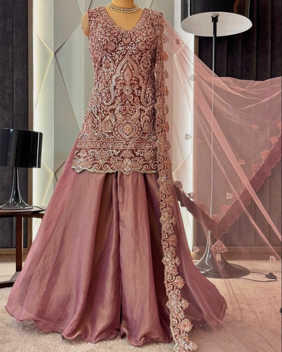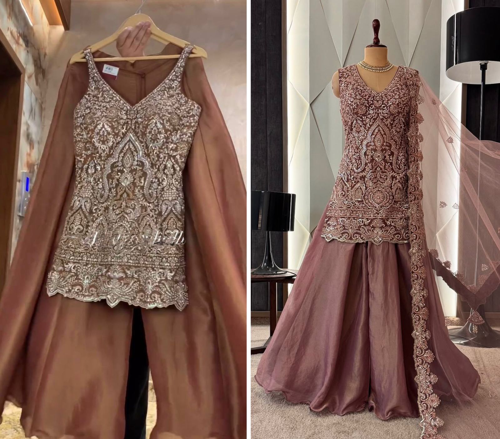 WORK : Fully embroidered with sequin work and fancy lace on borders.