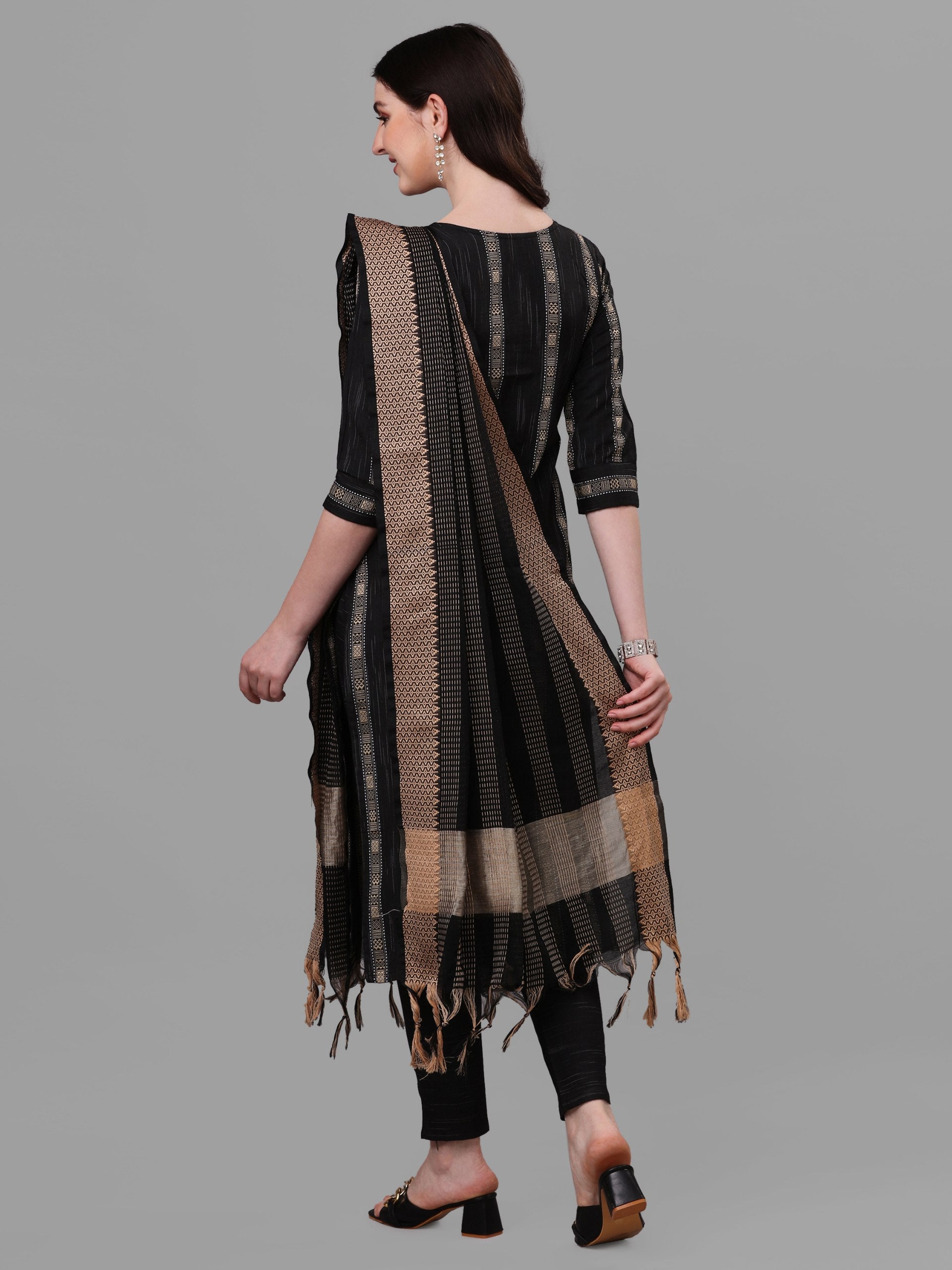 This stylish and comfortable Kurta Set is crafted from high-quality cotton fabric, featuring a round neck and a straight kurti with a divider plaza design. The set includes a beautifully crafted dupatta and a fully stitched bottom, making it an ideal choice for both casual and semi-formal occasions.
