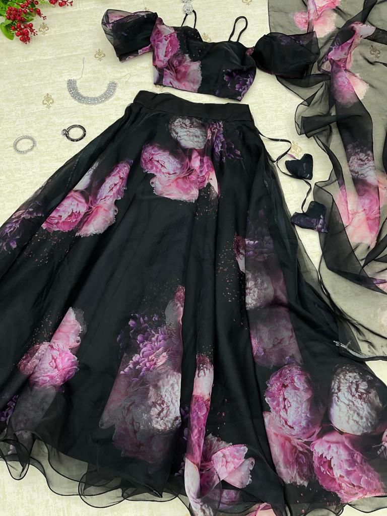 Innovative Black Color Printed Lehenga Choli