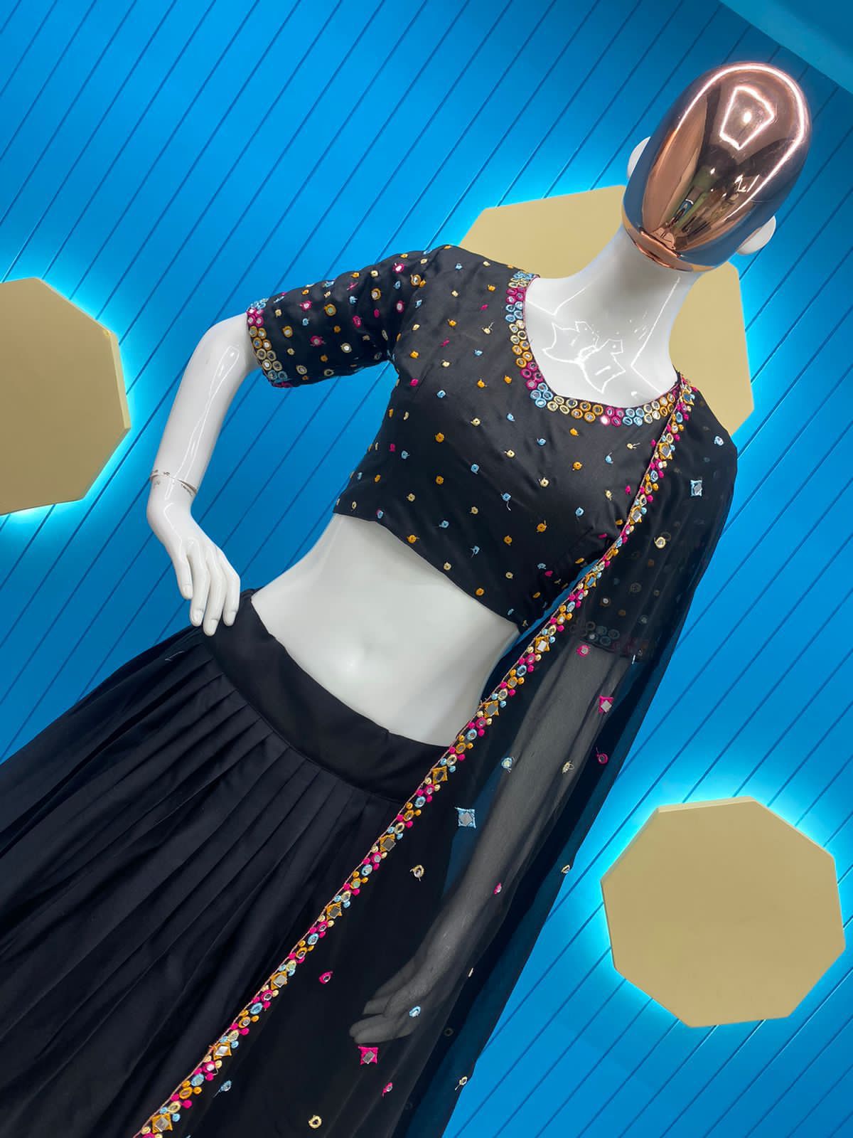 Dupatta : Georgette With Embroidery Real Mirror Work and Border Latkan (2.2 Meters)