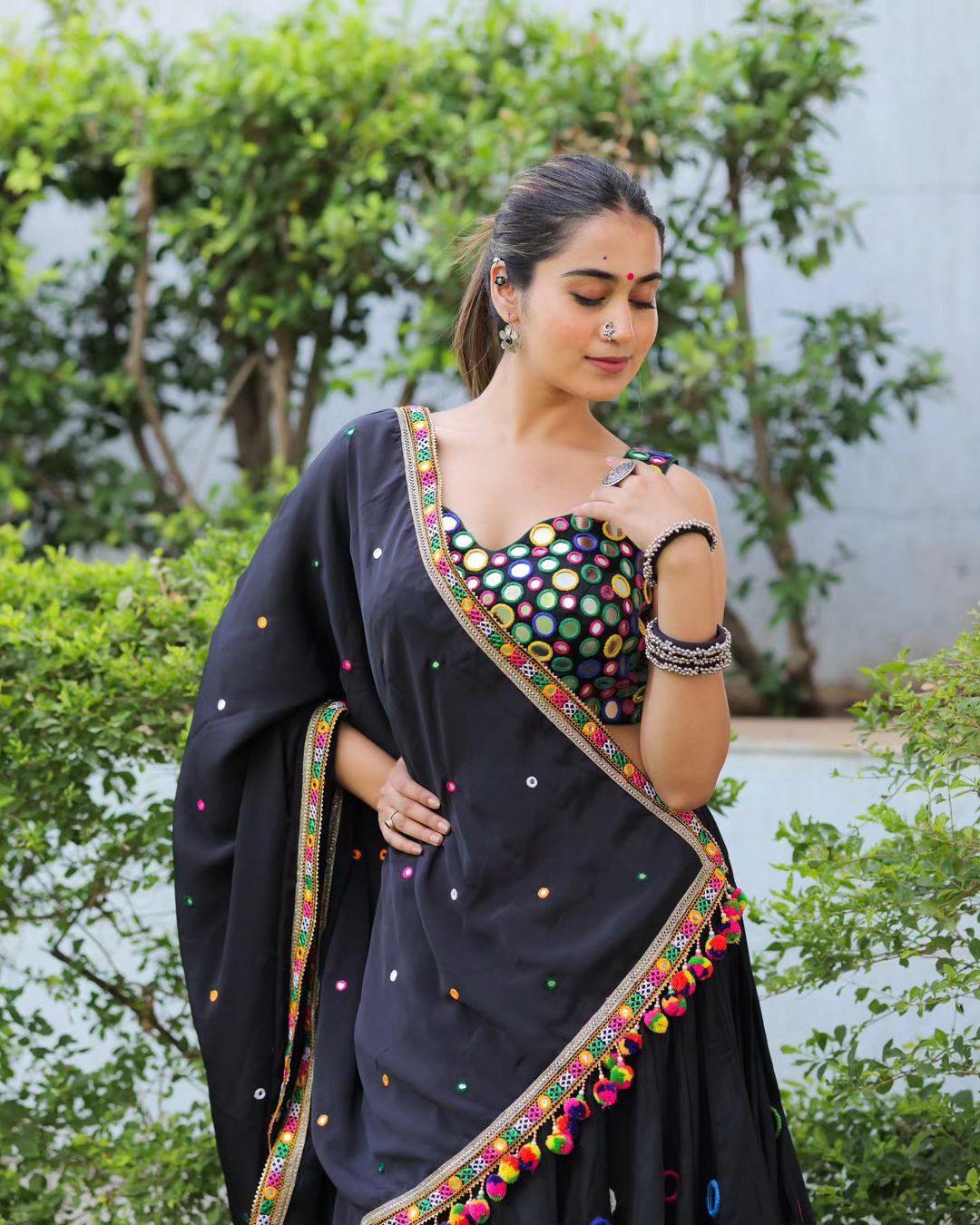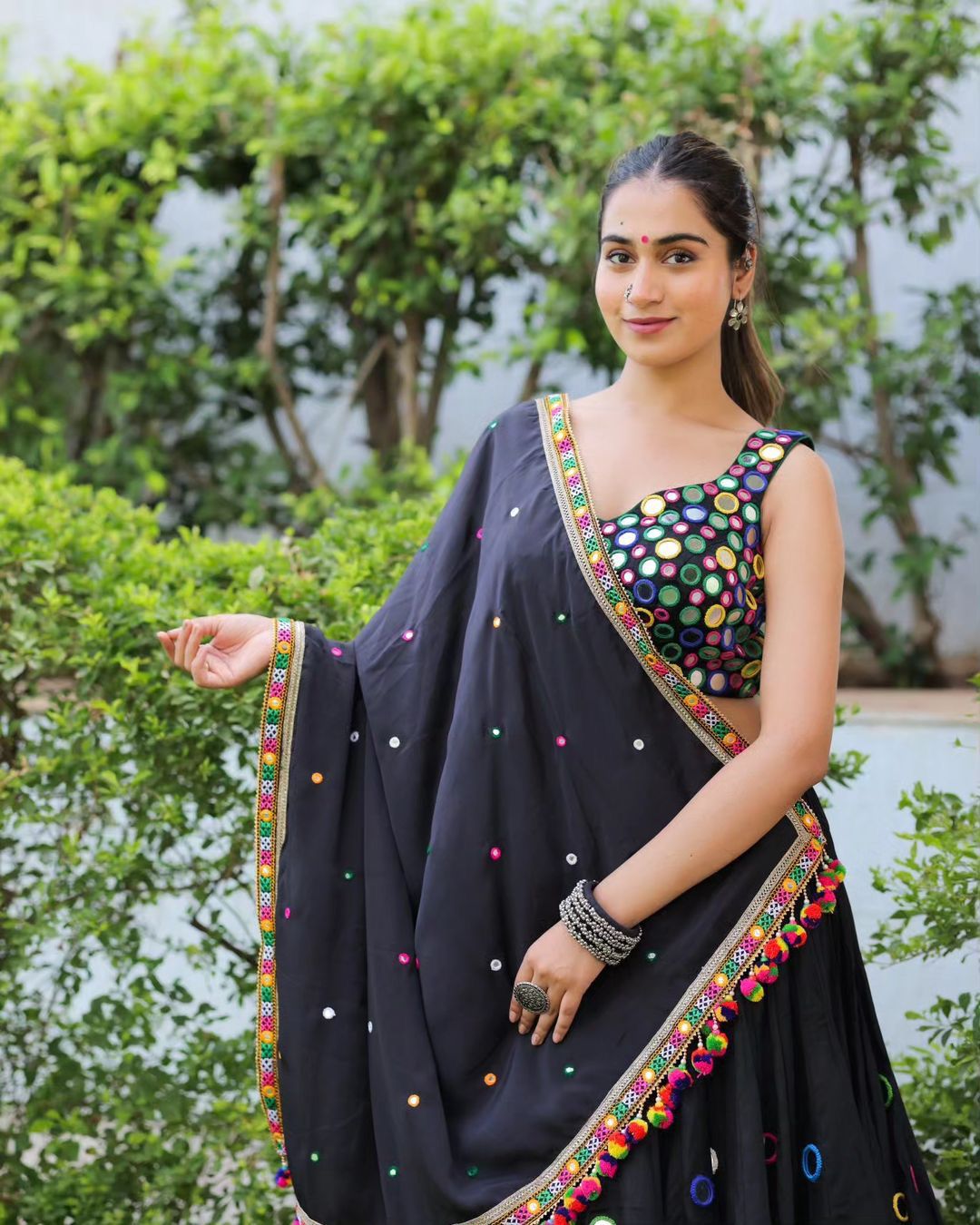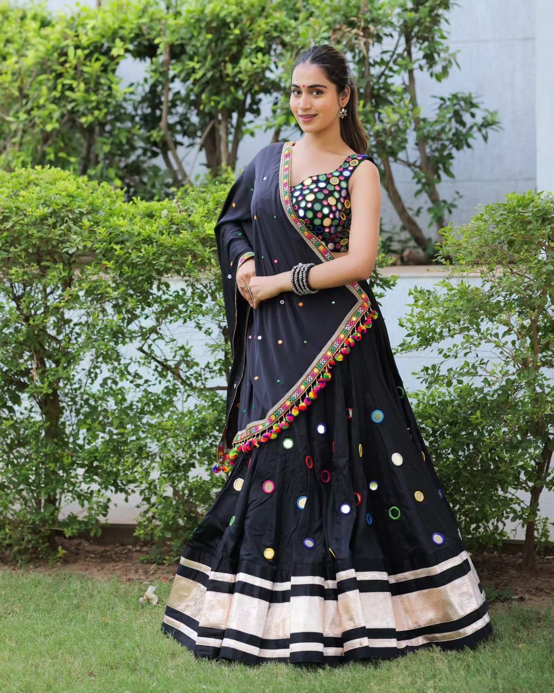 Keyya Black Mirror WorK Navratri Lehengha With Store Images