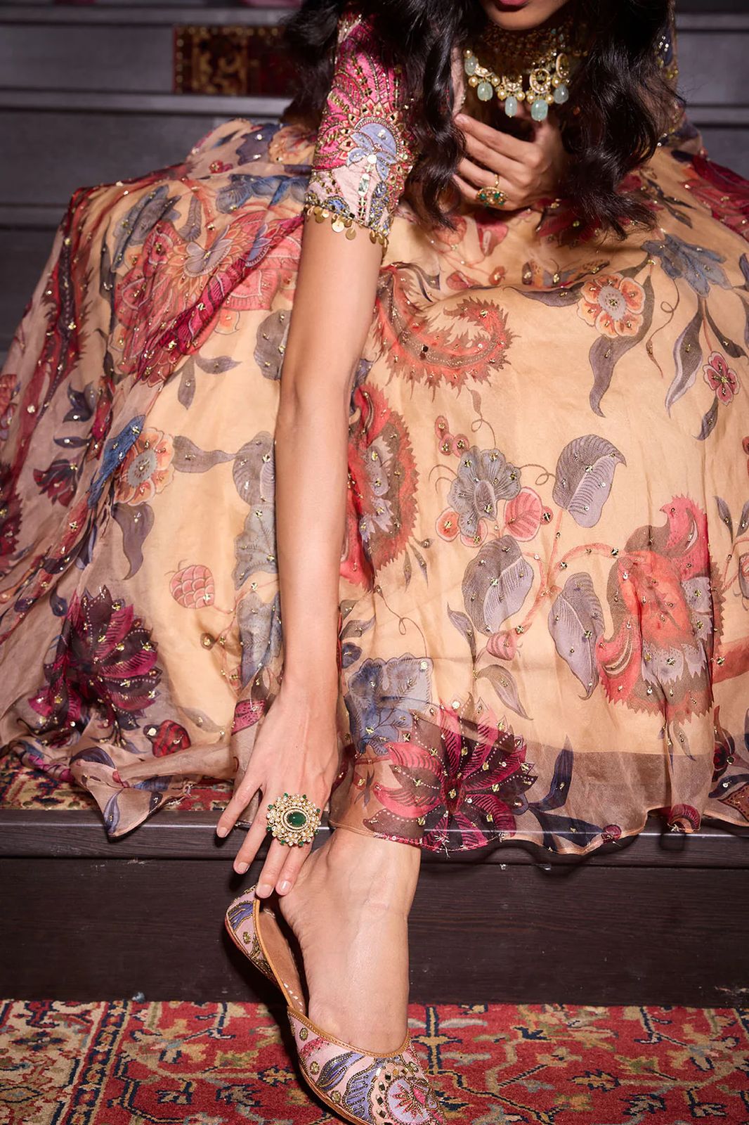 SIZE : Beautiful digital print and coding sequence work with 4 side sequence lace border.