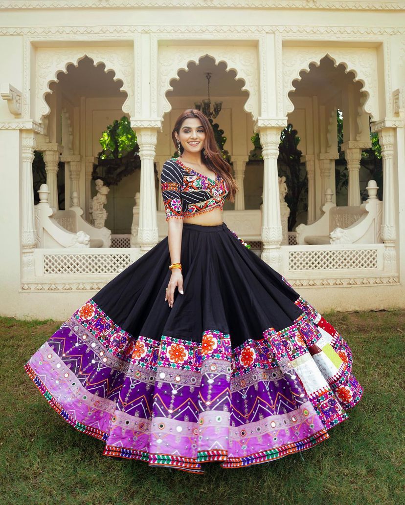 LEHENGA : Heavy muslin cotton with digital print and real mirror work (4 meters flare &