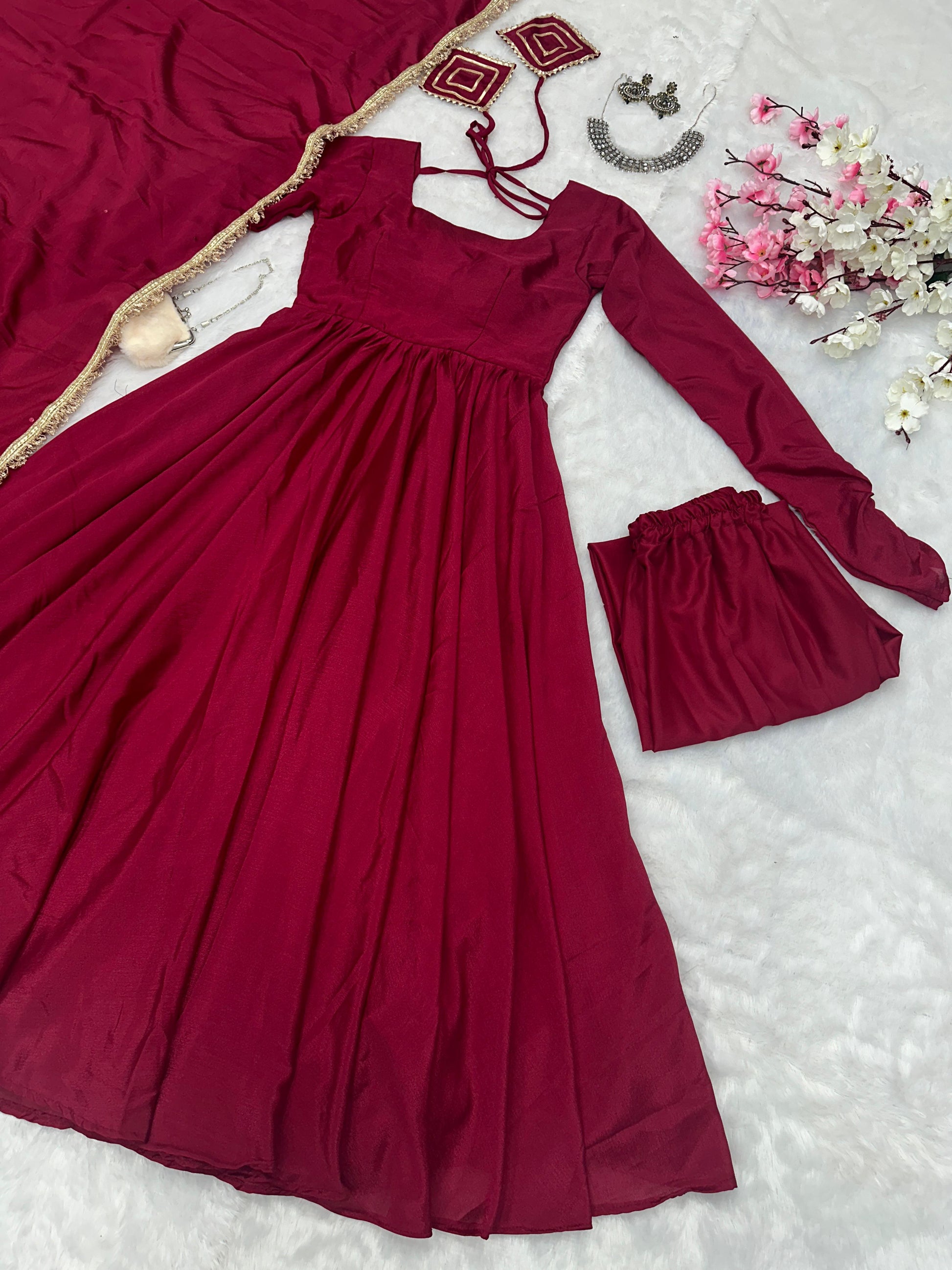 Dupatta - Chinnon silk Dupatta with Lace border (2 meters)