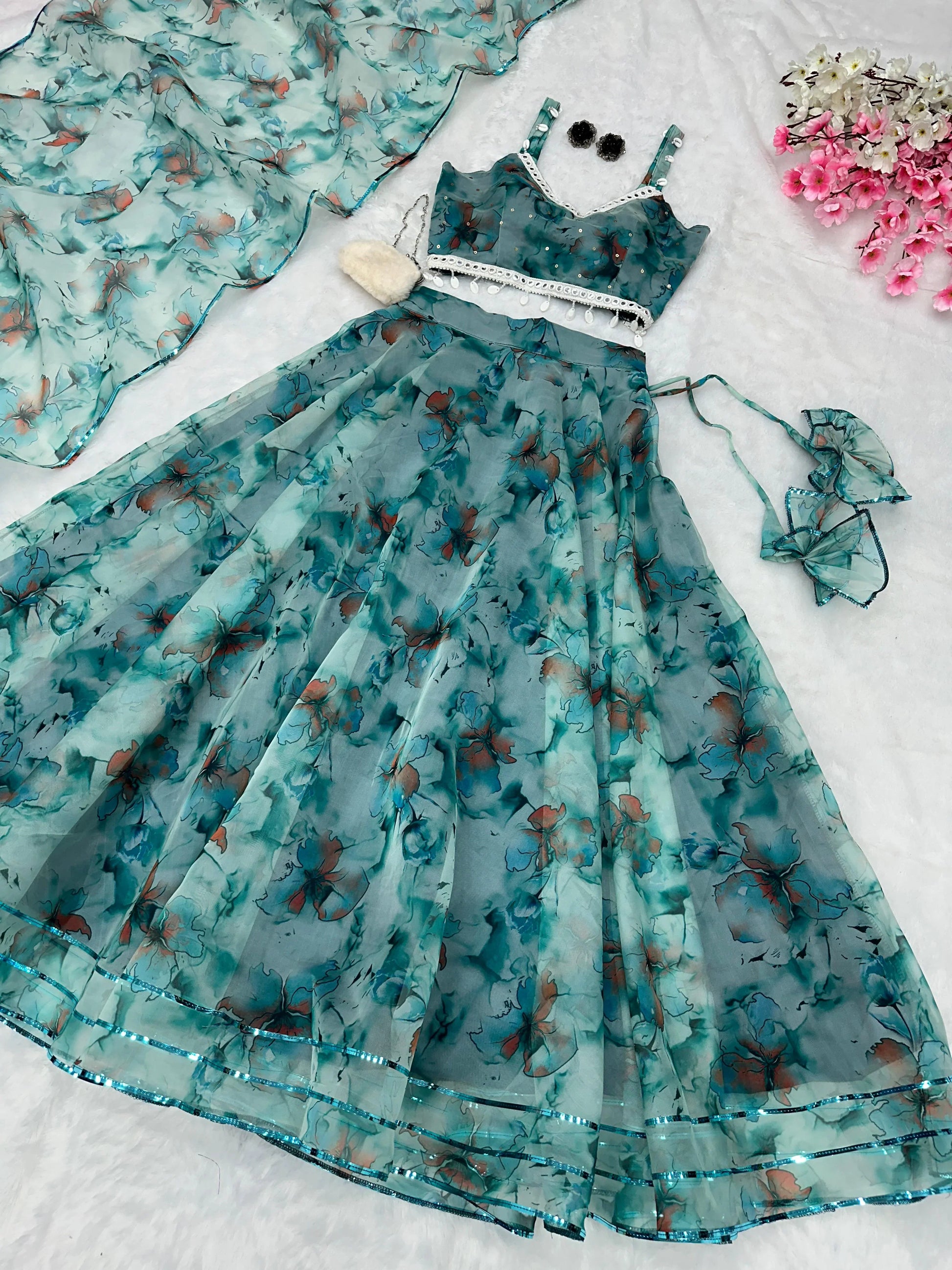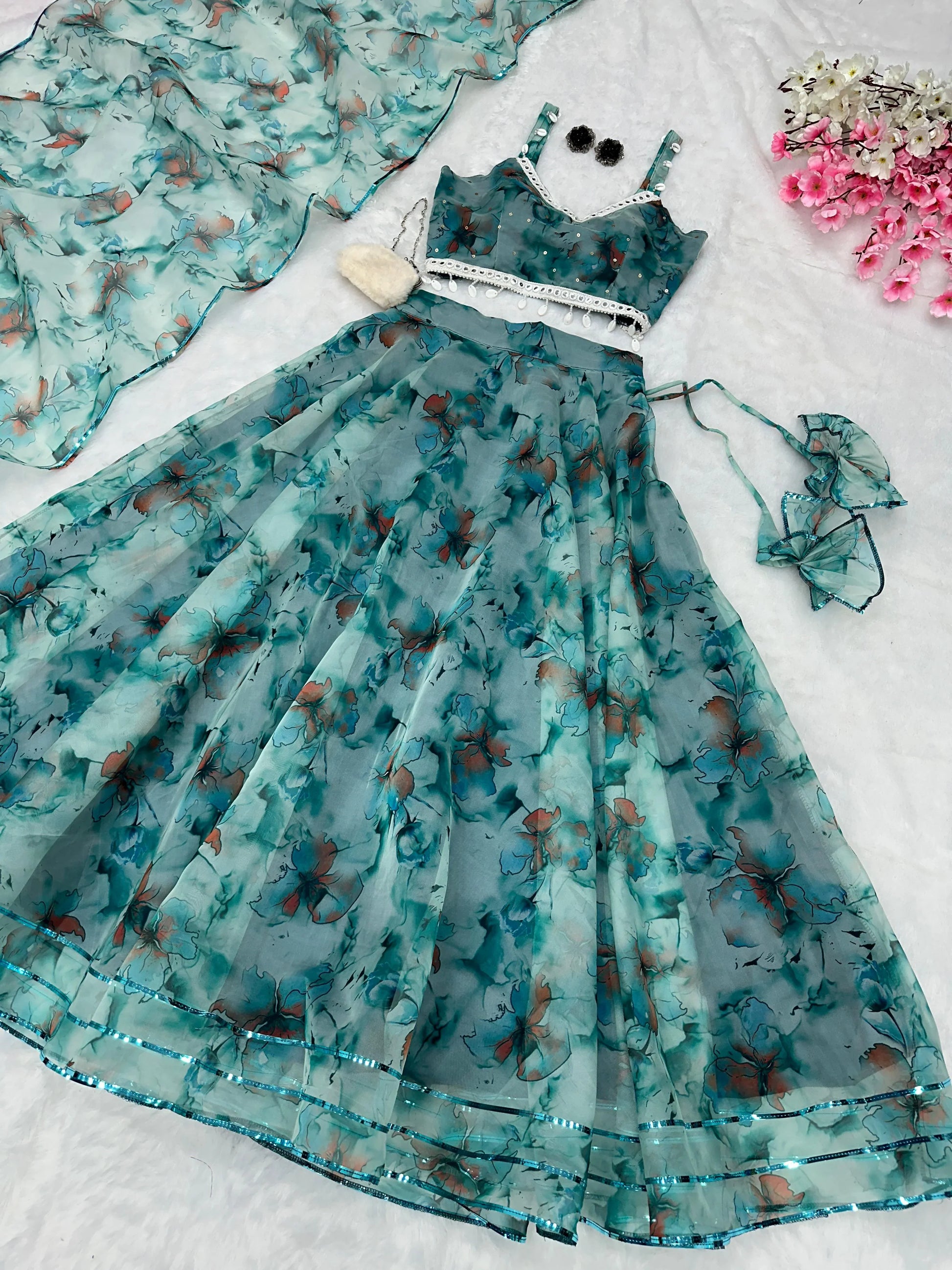 Mesmerizing Aqua Blue Color Organza Lehenga Choli