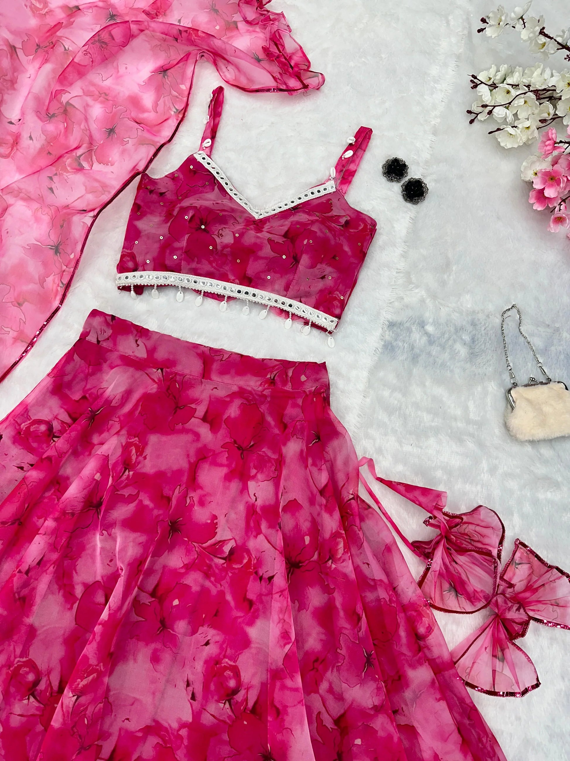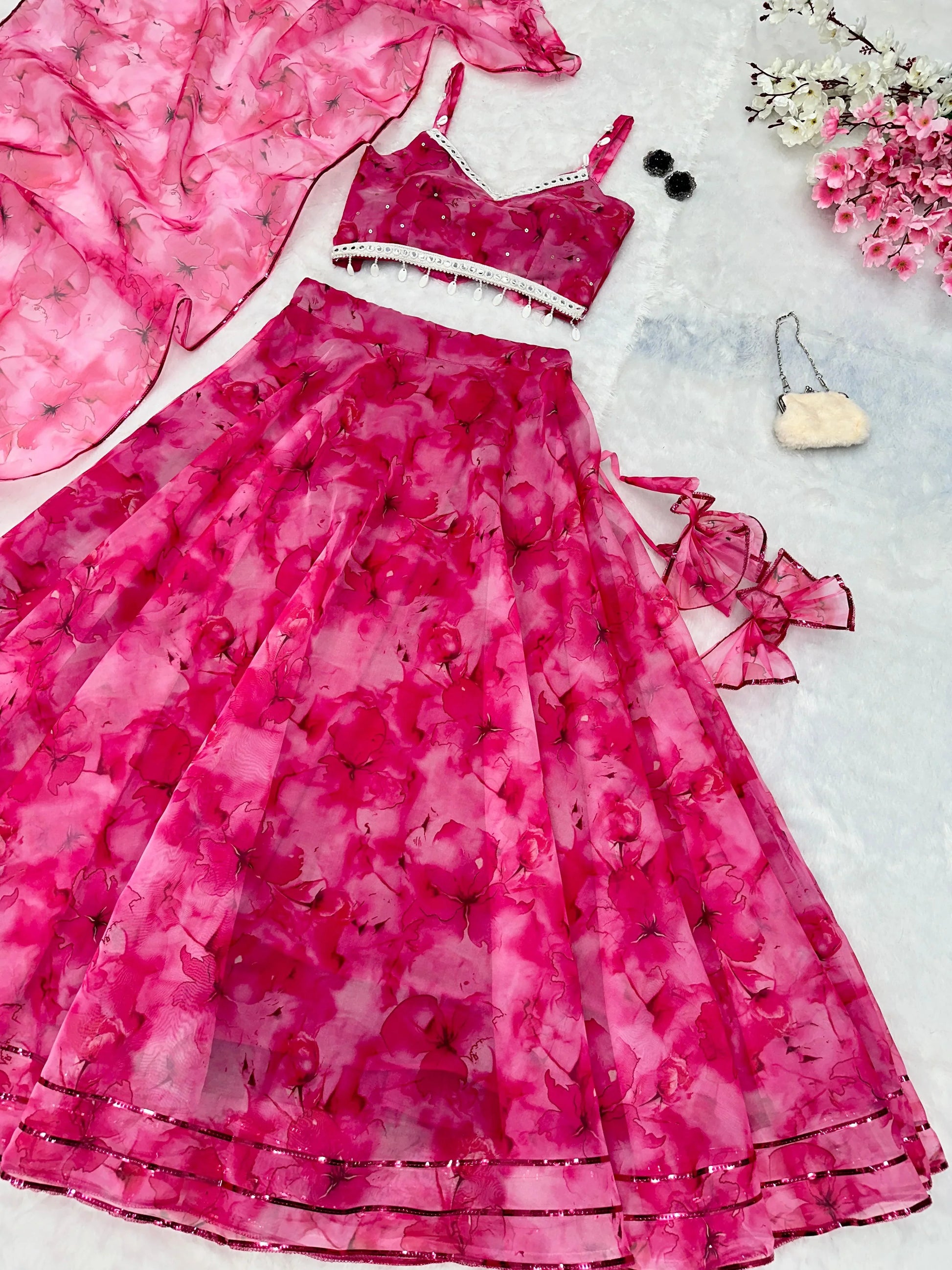 Mesmerizing Pink Color Organza Lehenga Choli