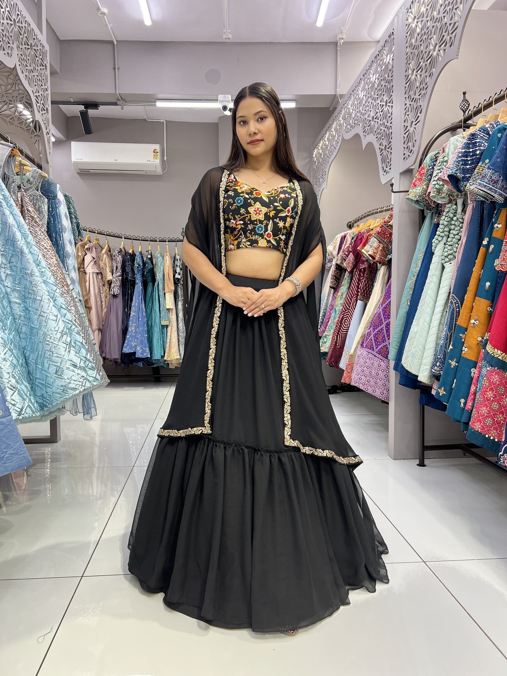 LEHENGA : Heavy georgette with pleated work (Full Stitched)