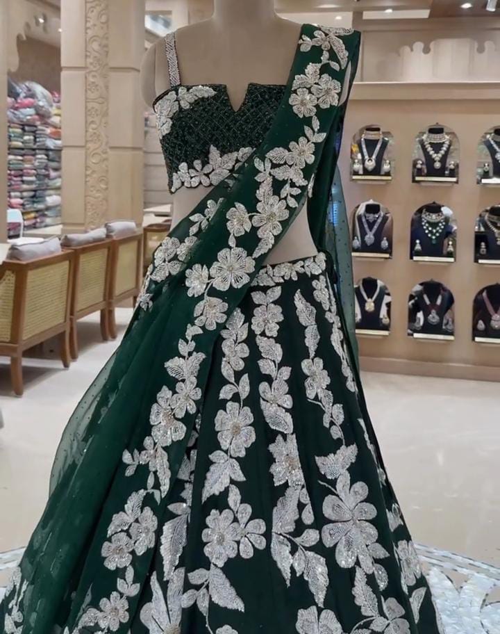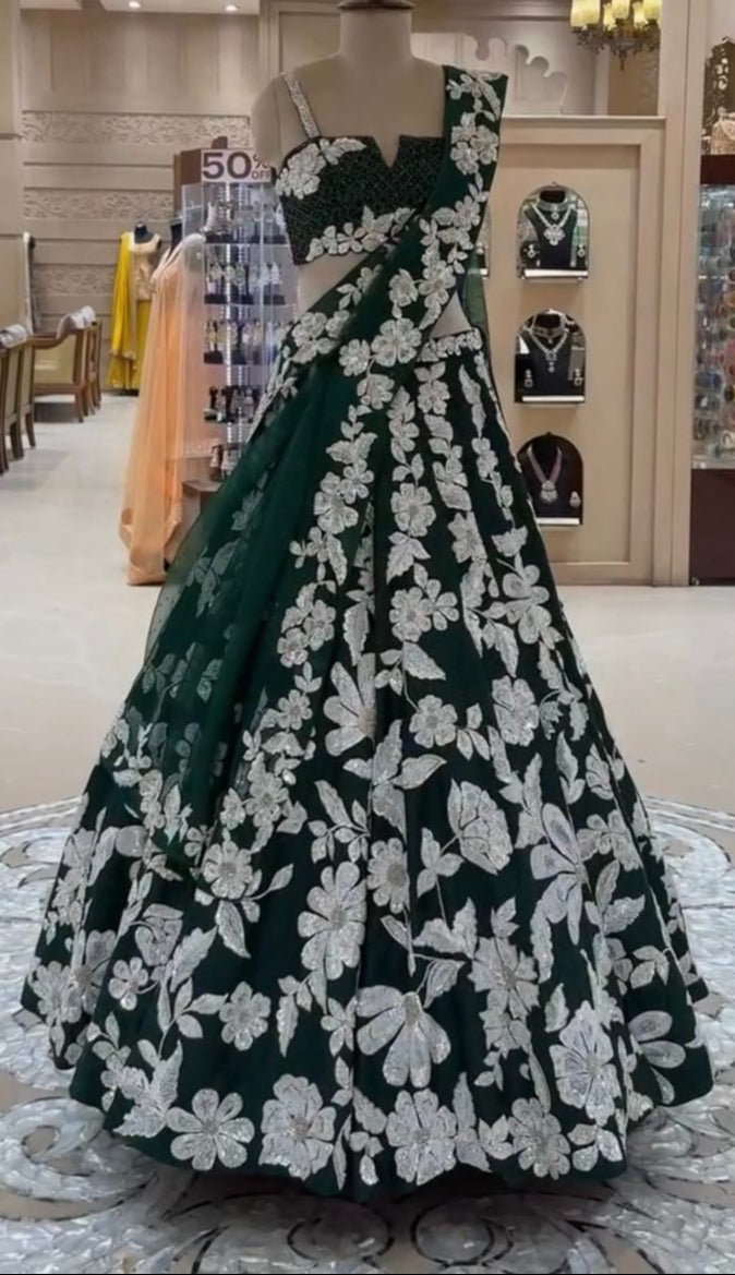 LEHENGA : Kasturi Silk Georgette Lehenga with Rainbow Sequins & Dori Work with can-can attached.