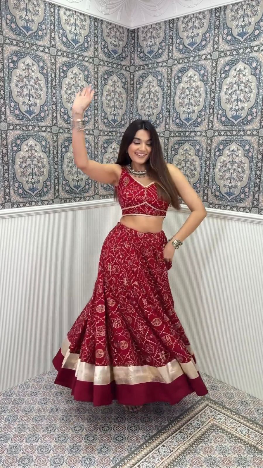 Lehenga : Maslin Printed With Golden Patta Work