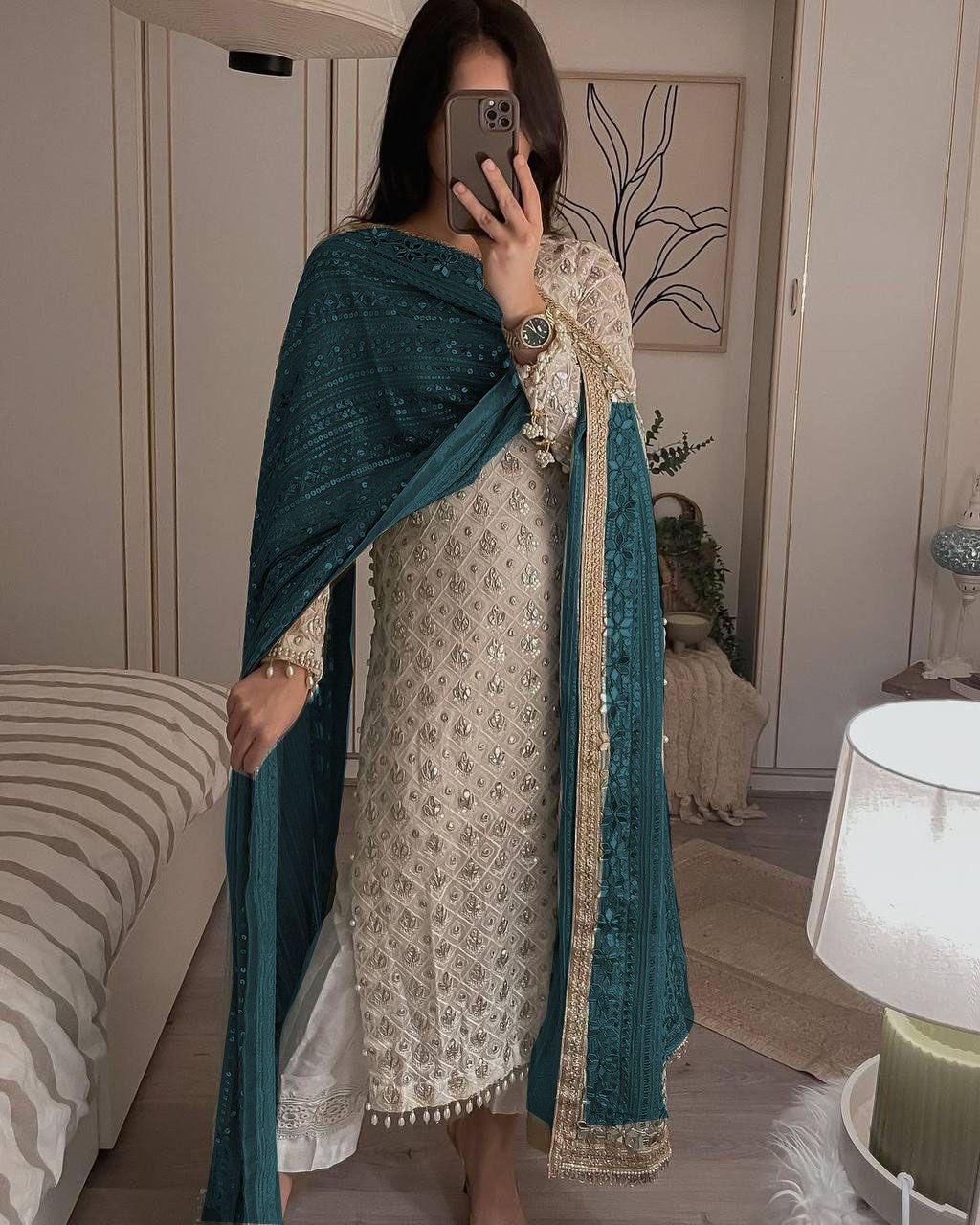 Faux Georgette With Sequence Embroidery (2.2 meter)
