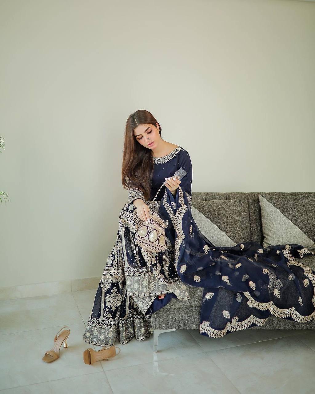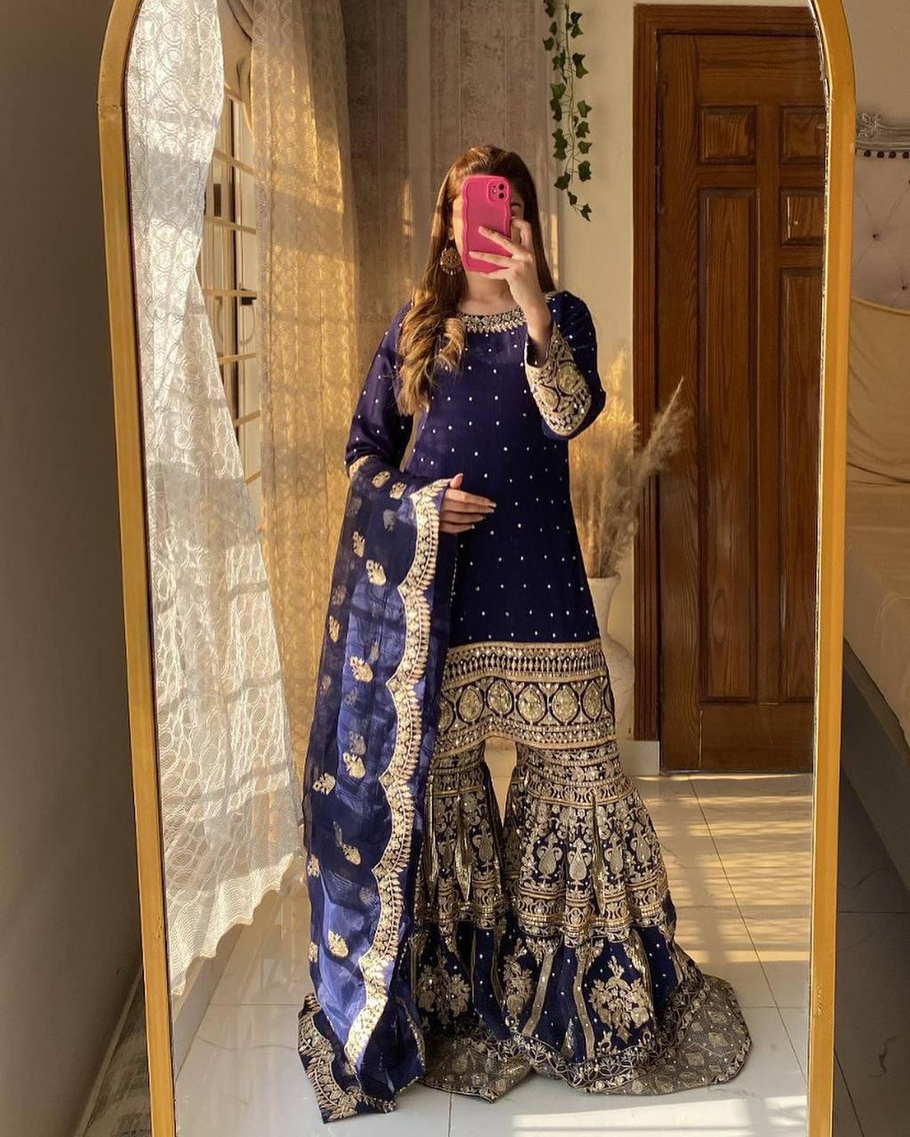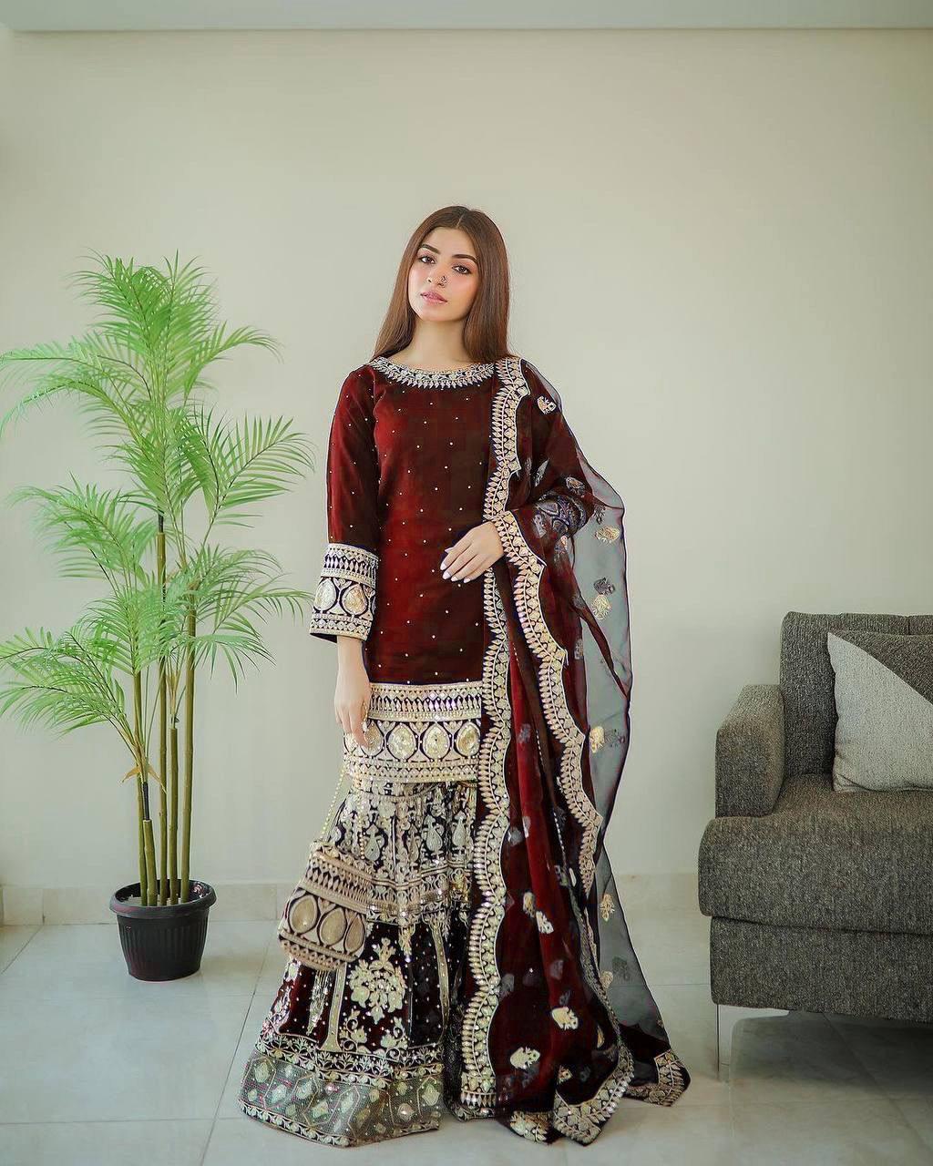 SHARARA : Heavy georgette with full embroidery & real mirror work (fully stitched)