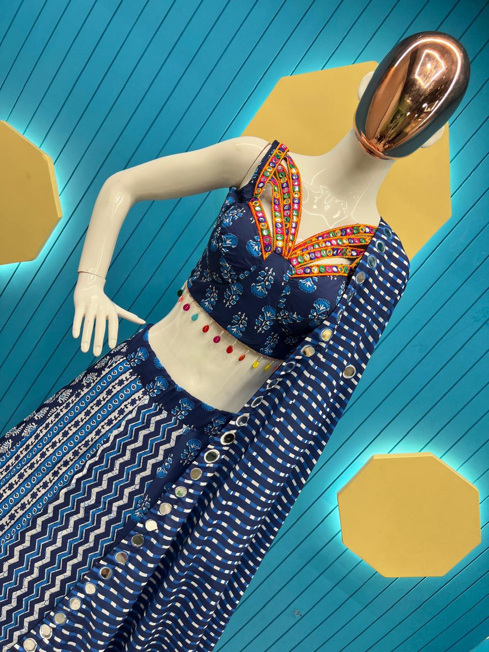 Dupatta : Muslin With Digital Print And Real Mirror Work (2.2 Meter)