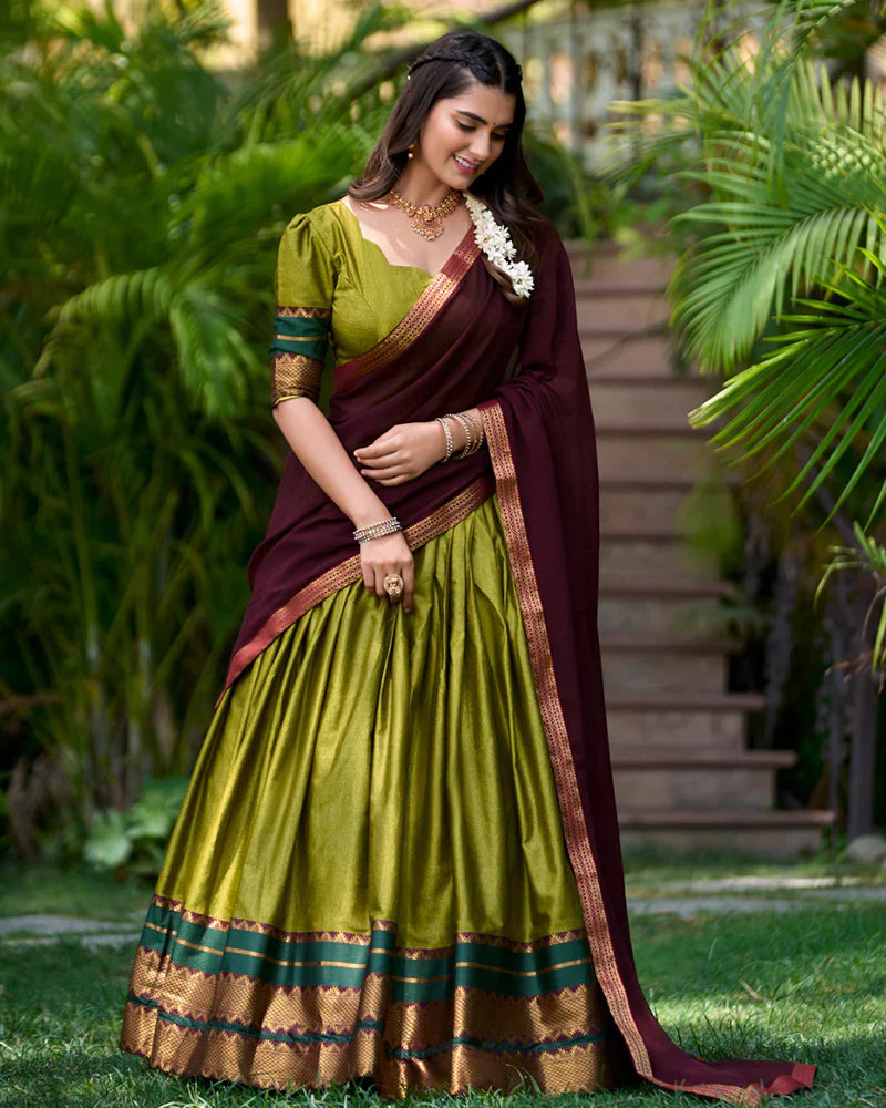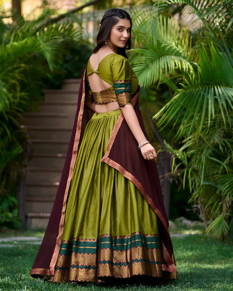 OLIVE GREEN COLOR POLY COTTON LEHENGA CHOLI