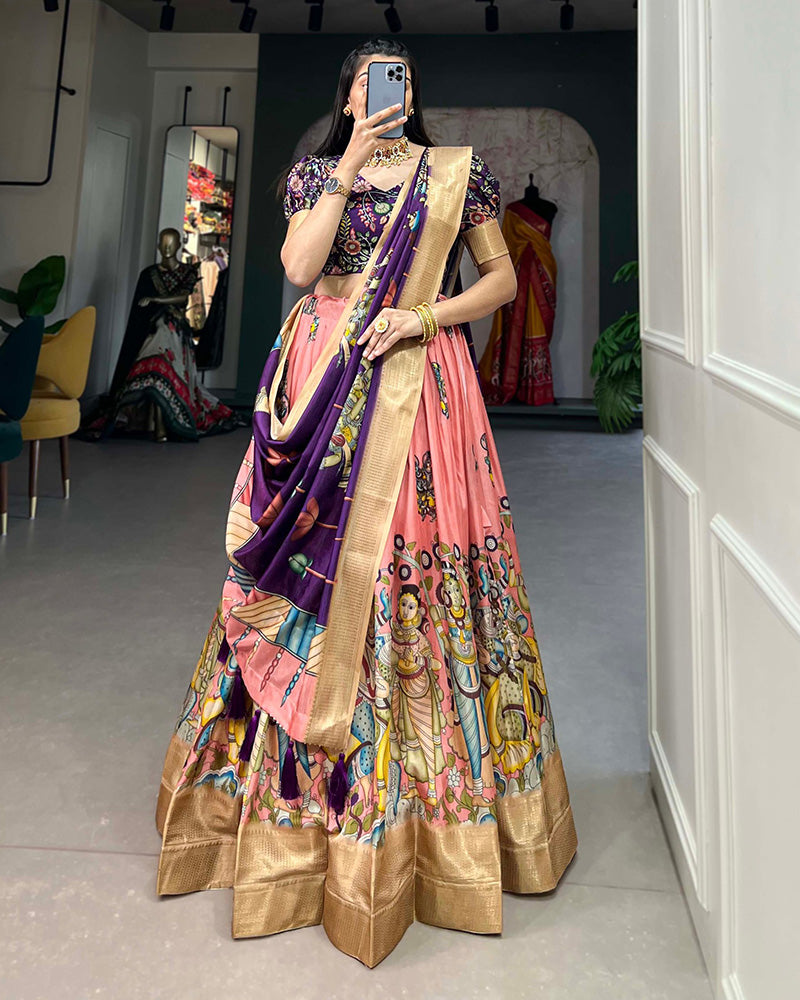Peach Color Dola Silk Designer Kalamkari Print Lehenga Choli