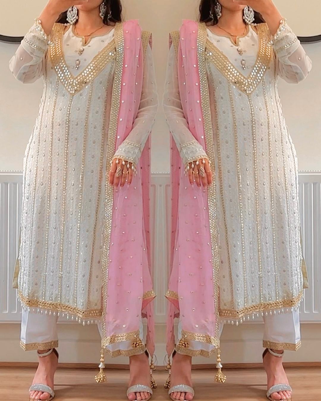 Top Fabric : Heavy Faux Georgette Fabric With Heavy Embroidery 9mm And 5mm Sequence Work And Ready-Made Moti Latkan Less. (Fully Sleeve)