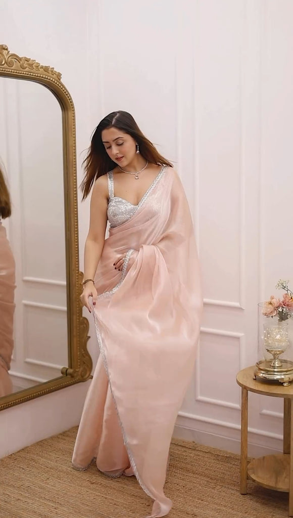 Premium Jimichu Fabric Saree with Gota Patti Lace and Sequence Blouse