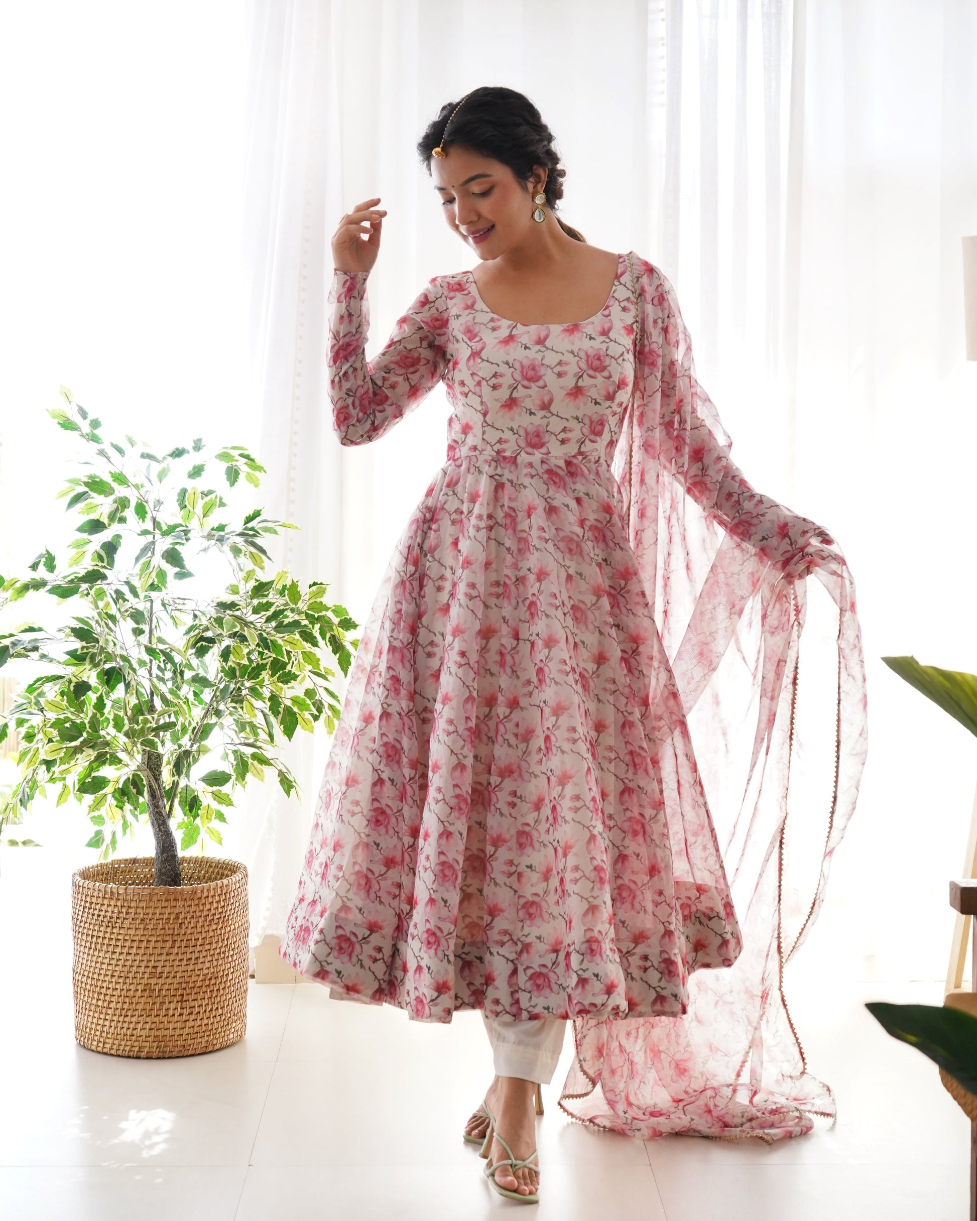 - Anarkali Fabric: Heavy Pure Soft Organza Silk Print