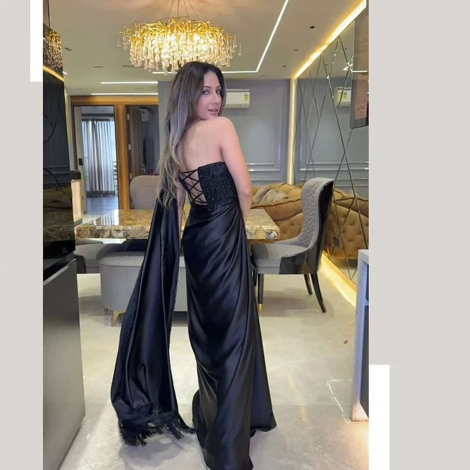 Gown : Japan Satin Silk Western Outfit With Attached Dupatta