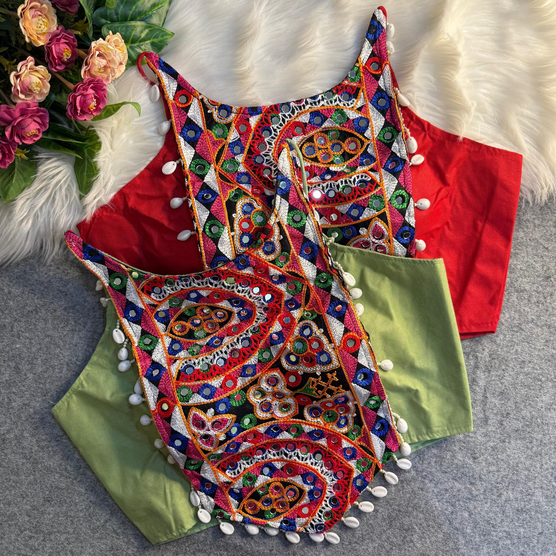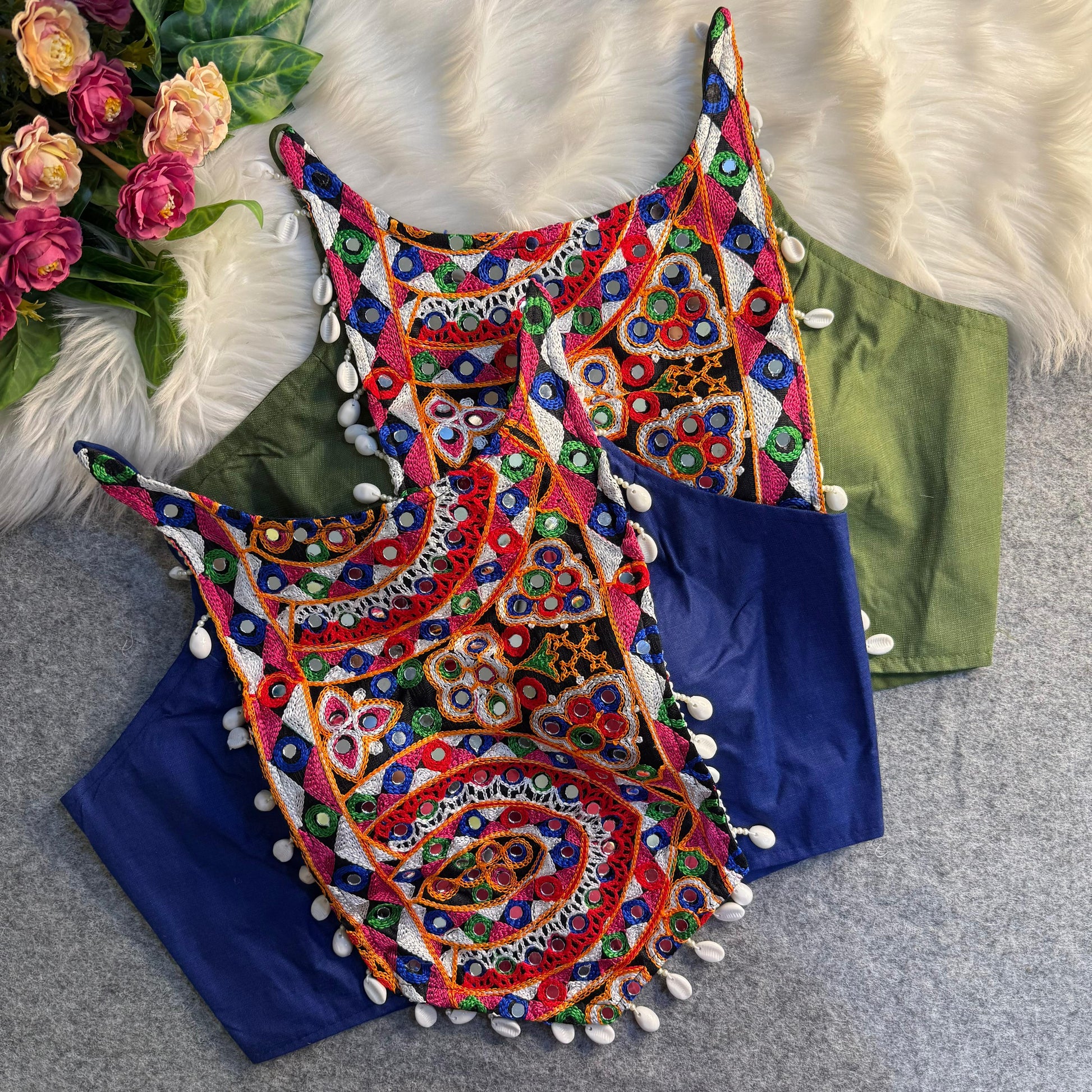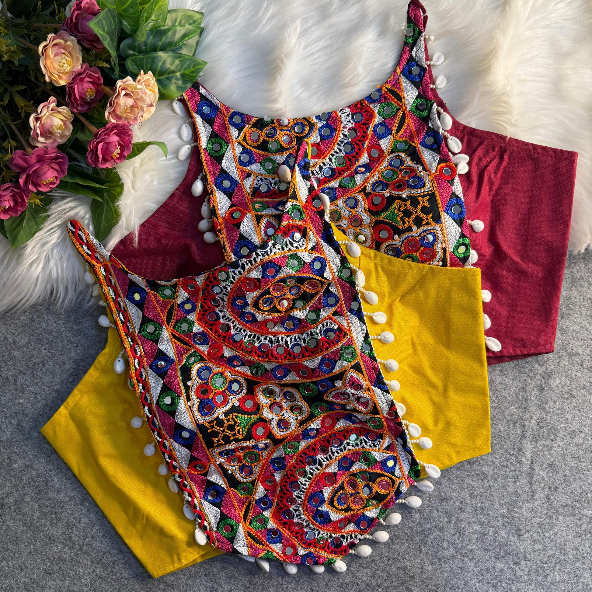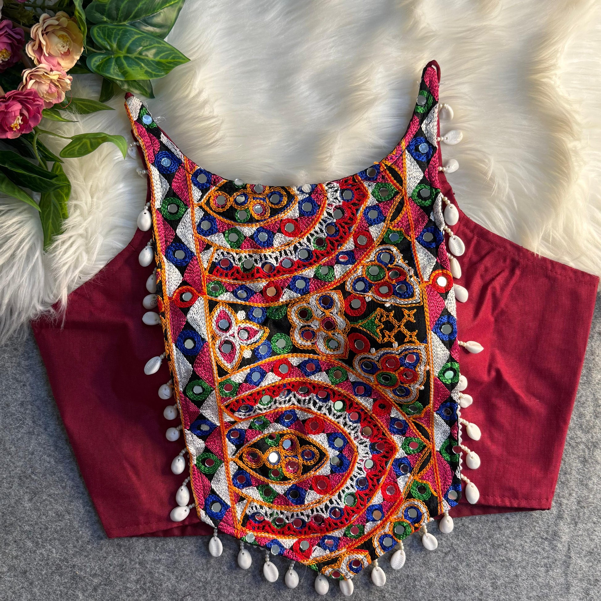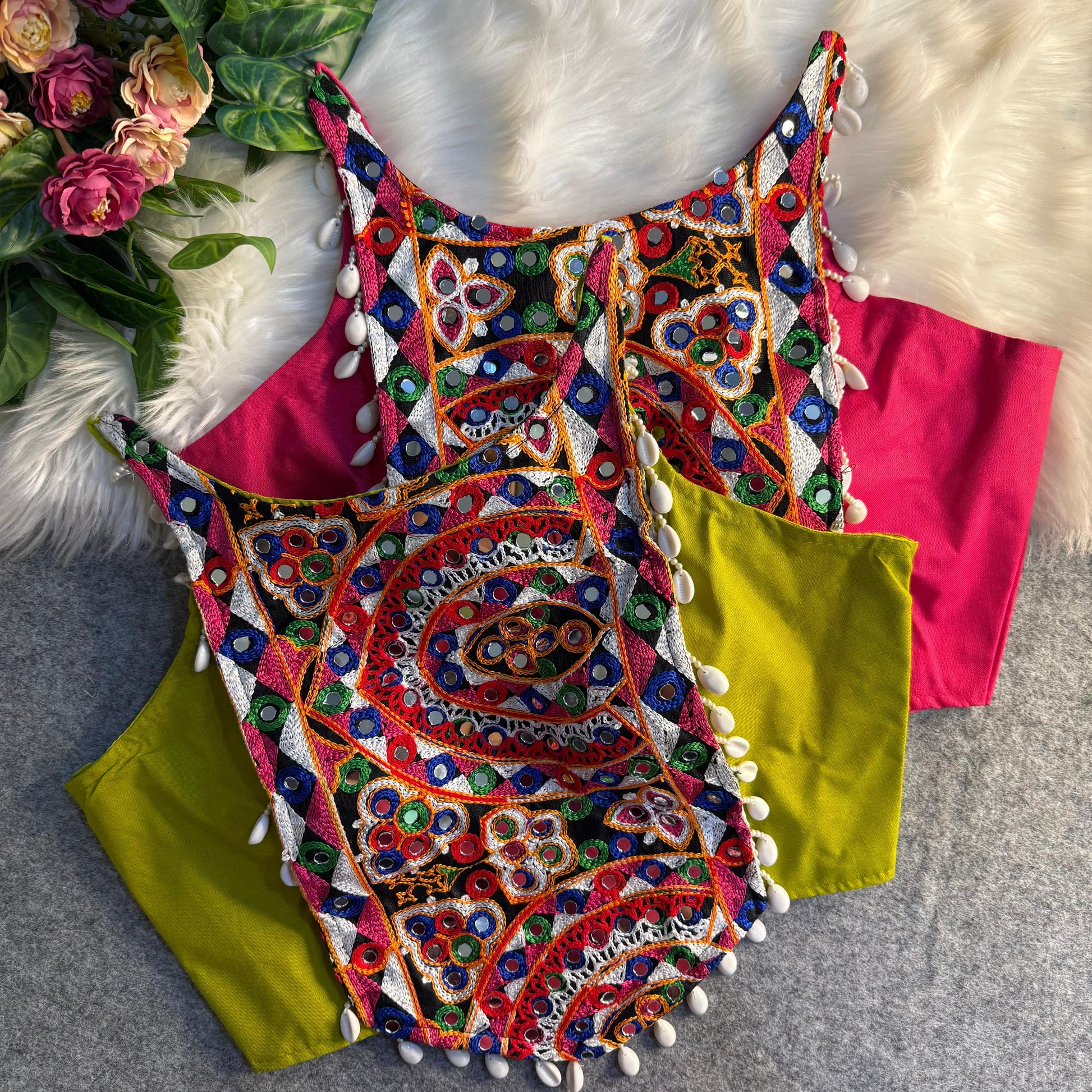 DESIGN : Beautifully crafted for Navratri & partywear. Features heavy stitching, heavy padding, handmade hooks, and a stylish back-open design.
