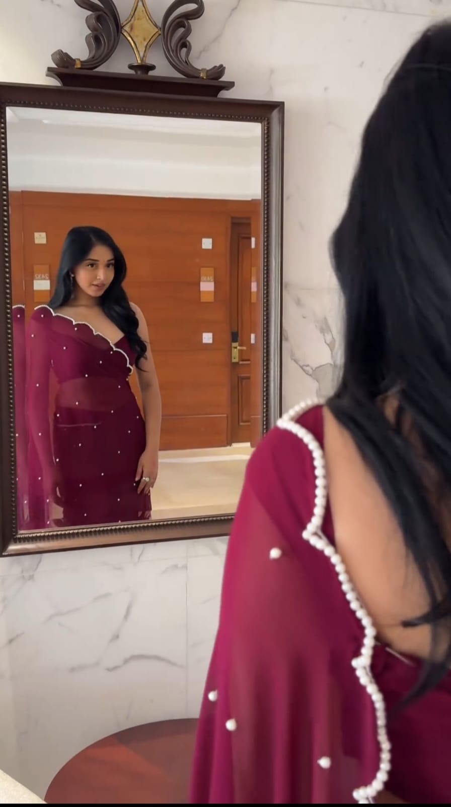 Blouse : Premium Georgette Embellished With Beautiful Hand Pearl Work (Unstitched 1- meter)